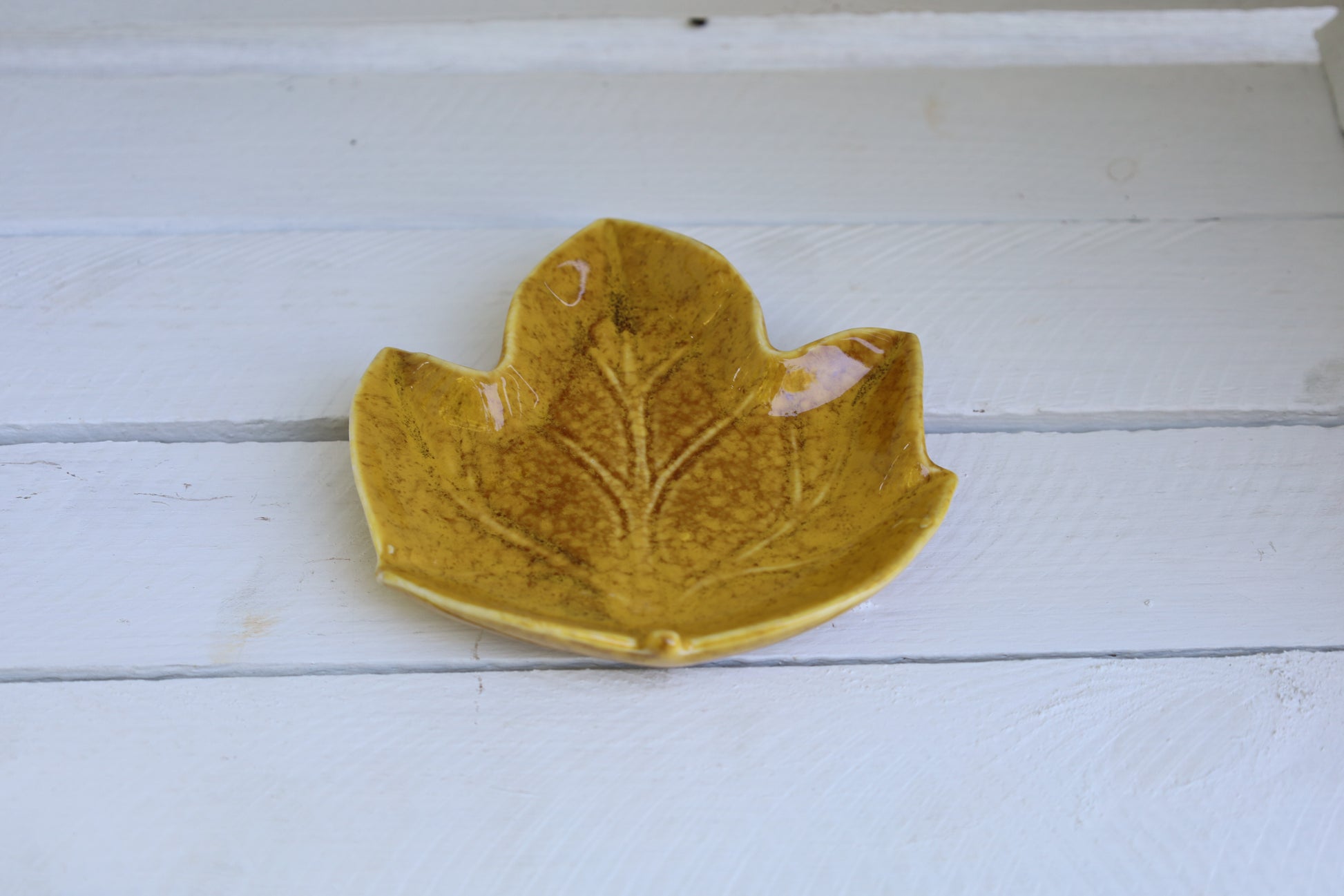 Keramik Schale Blattform Gelb 14x13 cm - Herbst Dekoration