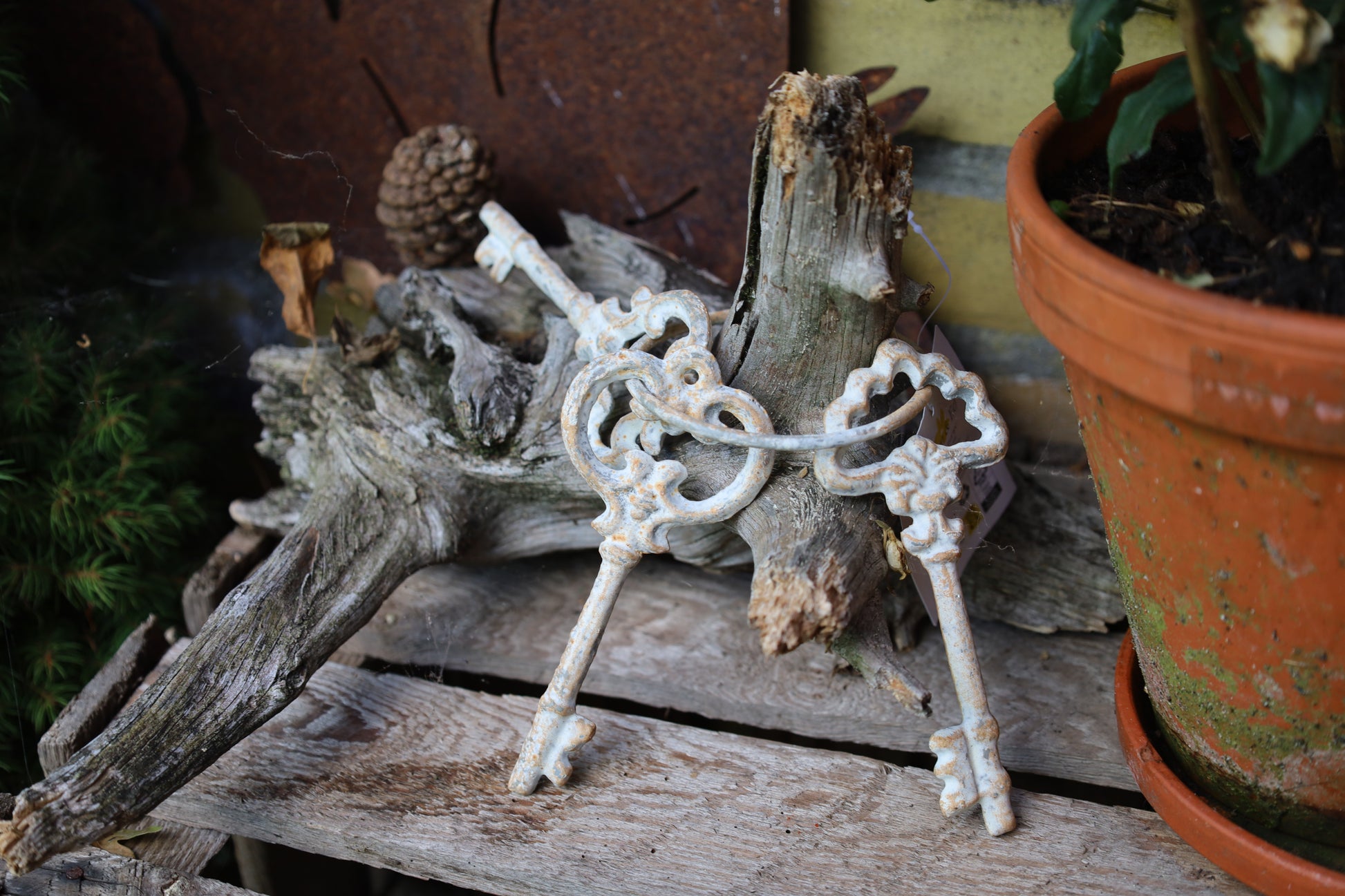Der weiße Deko-Schlüsselbund aus Gusseisen bringt verspielten Shabby Chic Flair in Ihr Zuhause. Mit seinem charmanten, nostalgischen Design ist er nicht nur ein dekorativer Blickfang, sondern auch ein originelles Accessoire, das jedem Raum Persönlichkeit verleiht.