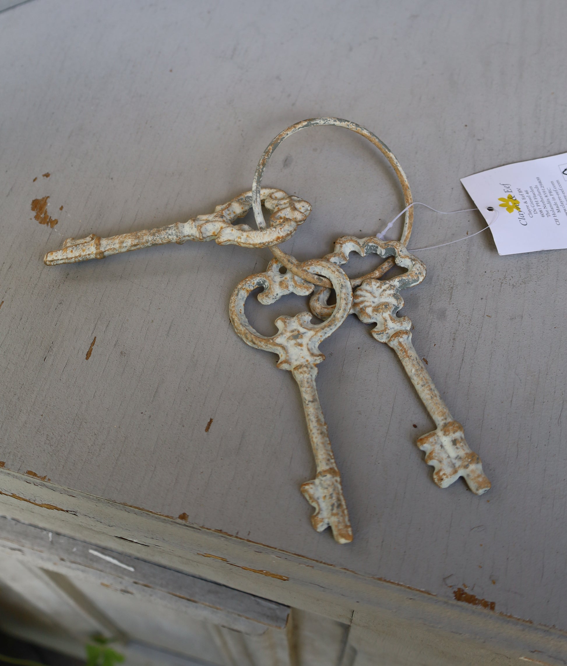 Shabby Chic Schlüsselbund Gusseisen Weiß - Vintage Deko Landhausstil
