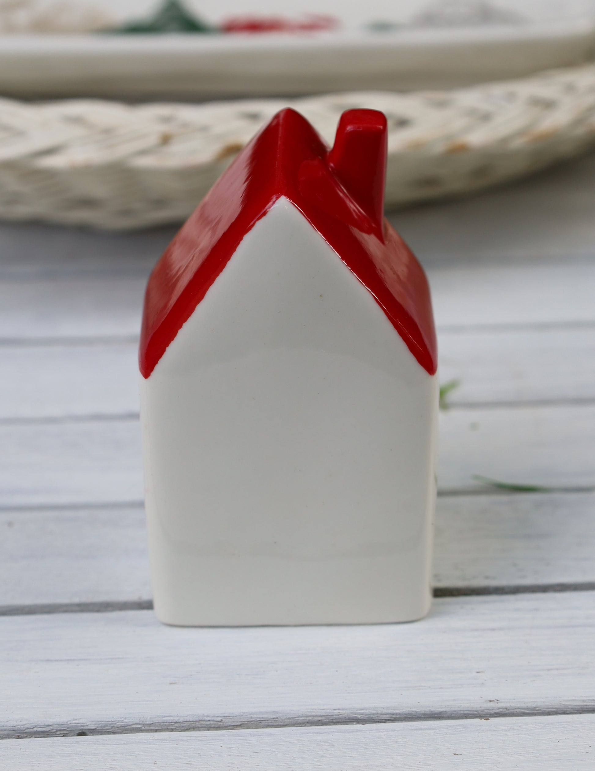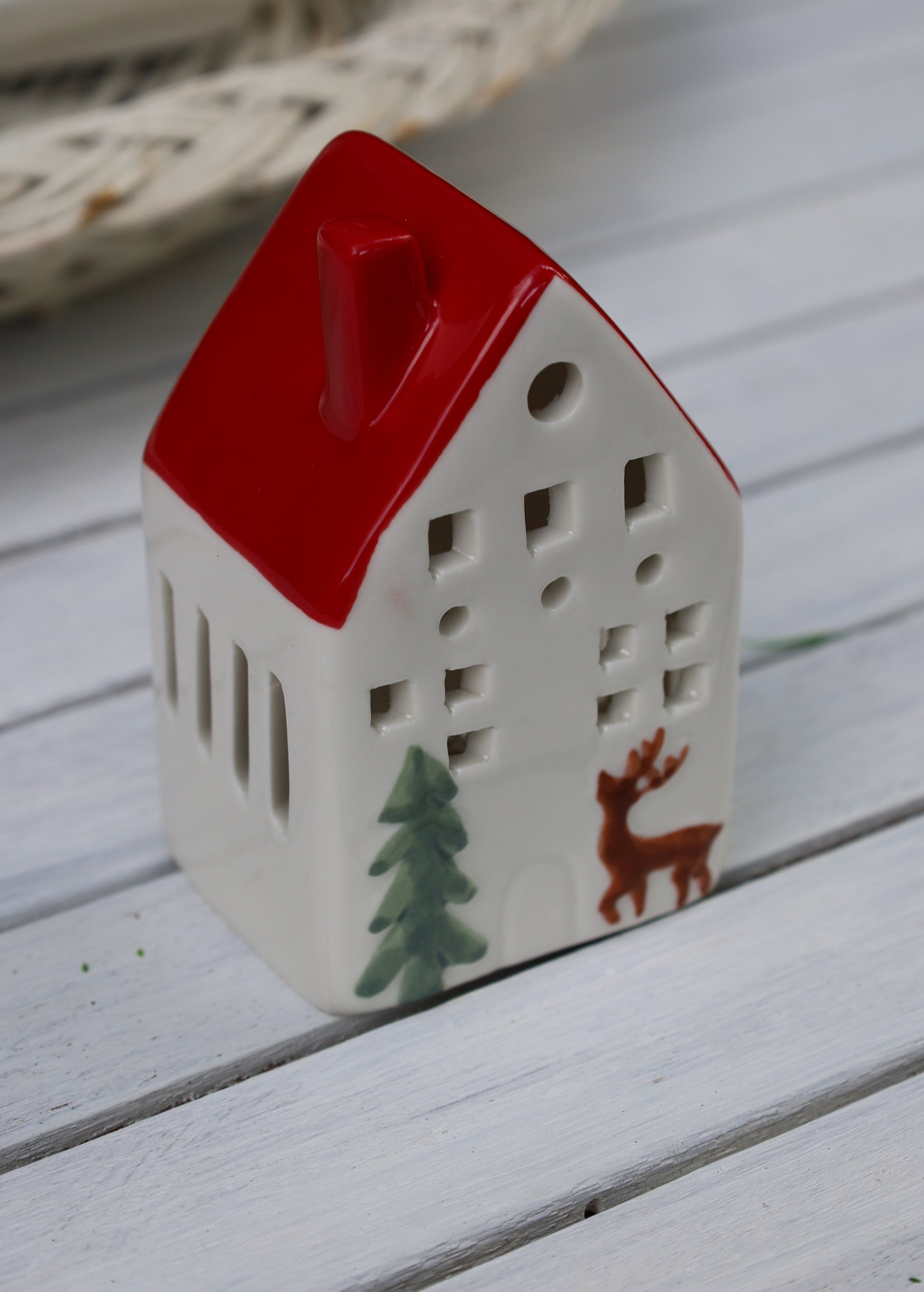 LED Lichterhaus Keramik Weiß - Winterliches Häuschen 6x5x10cm
