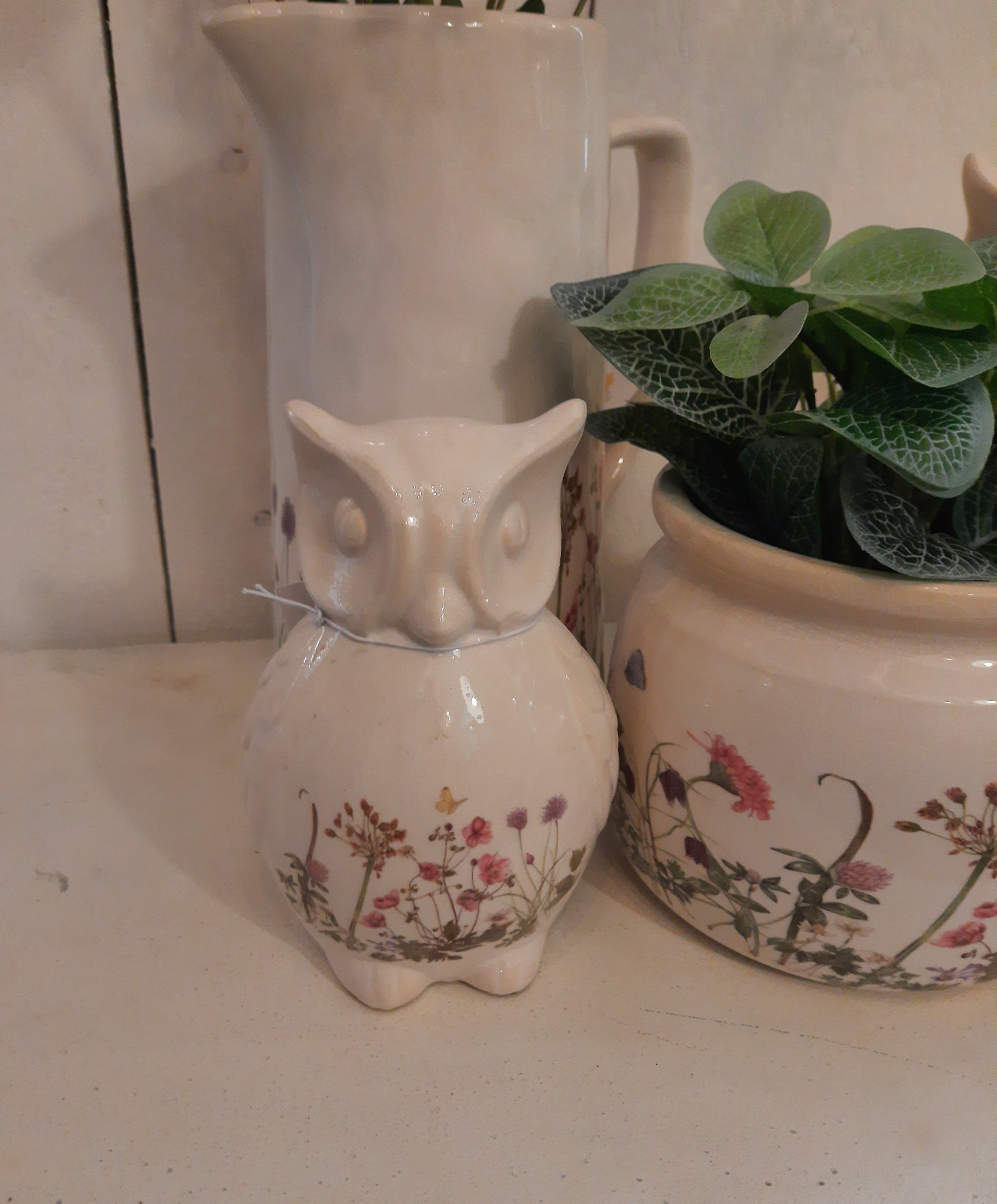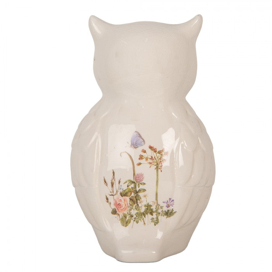 Niedlicher Eule in Beige aus Keramik mit Frühlingswiesen-motiv