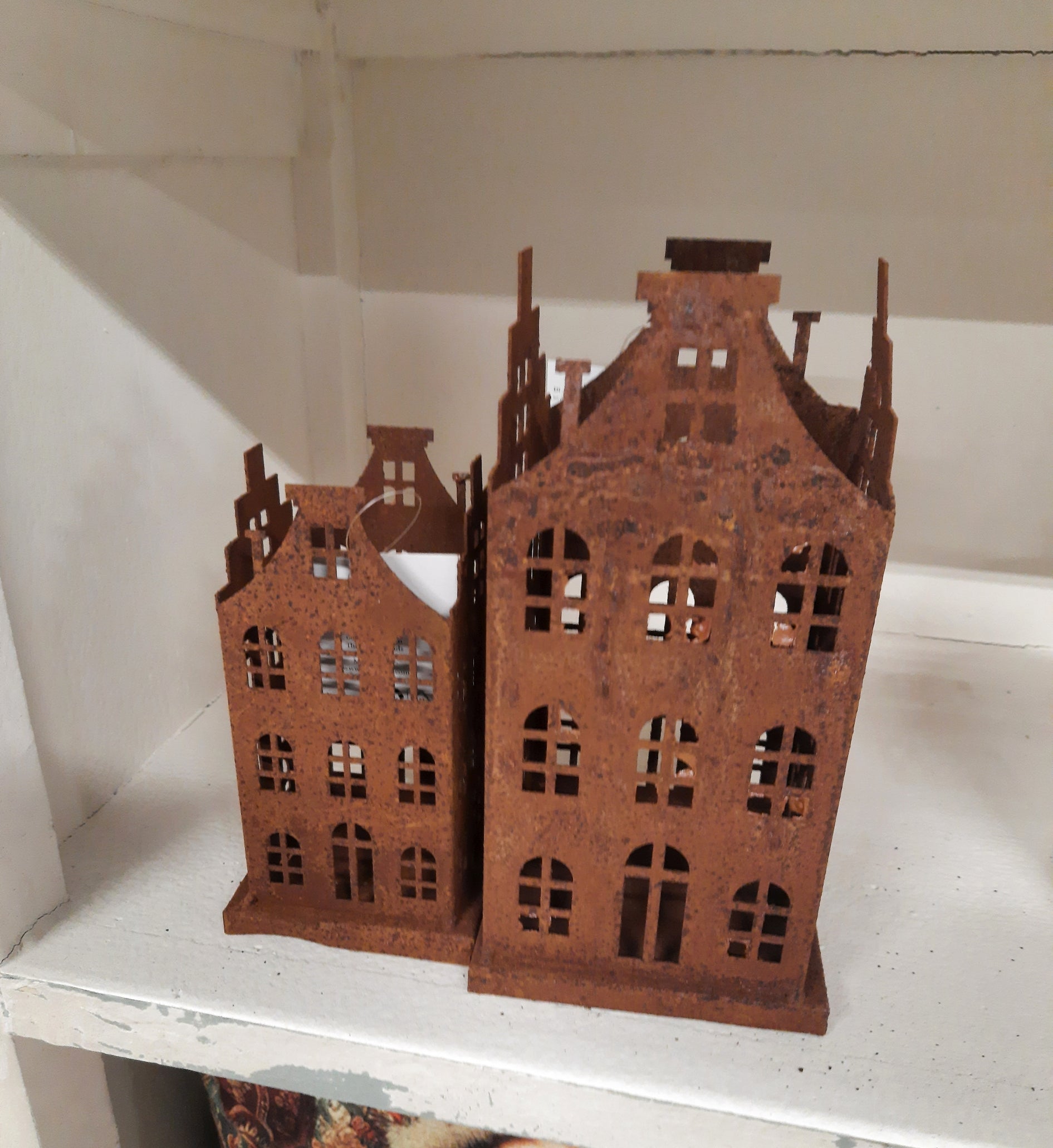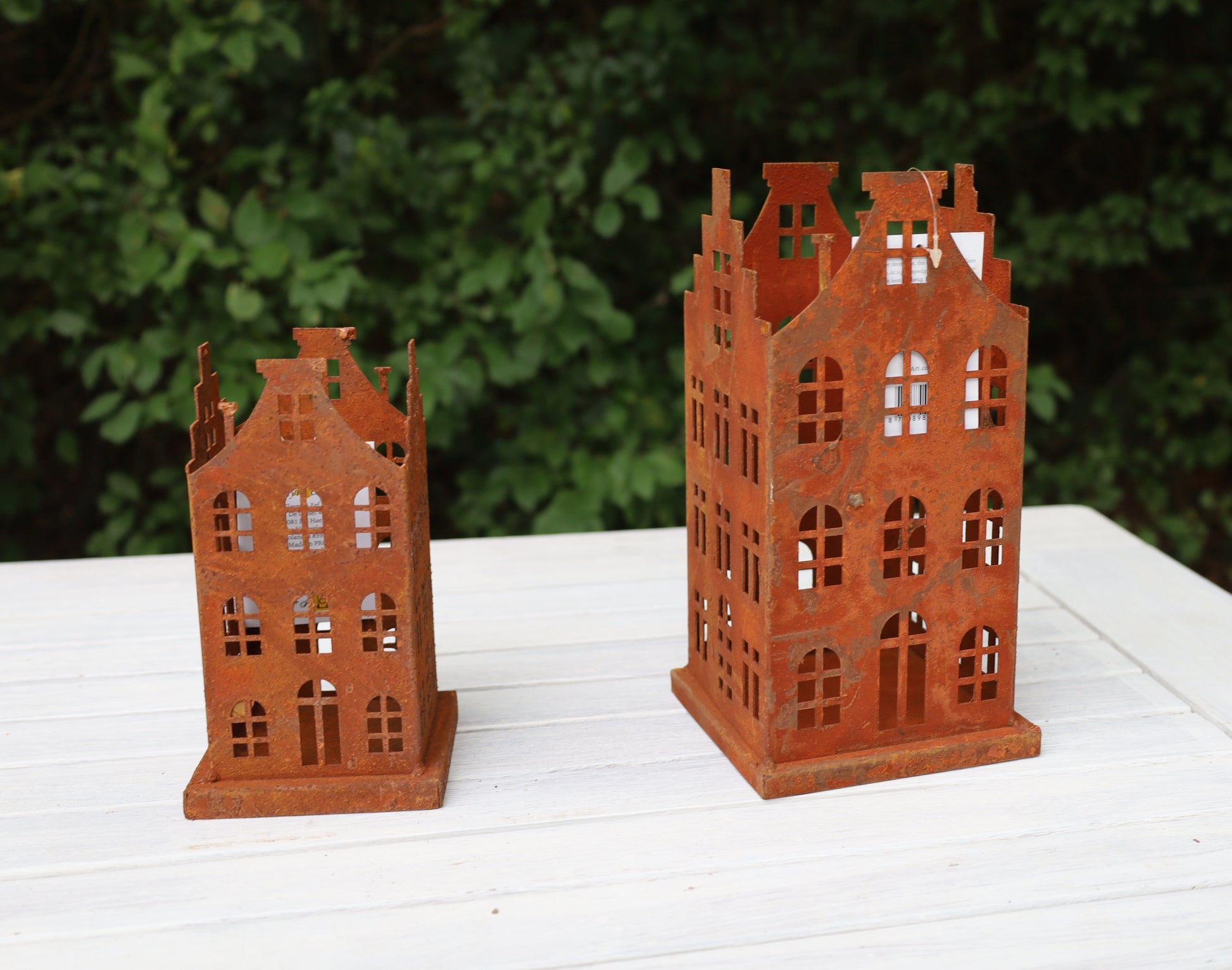 Edelrost-Häuschen 2er Set - Vintage Gartendekoration im Shabby Chic Stil