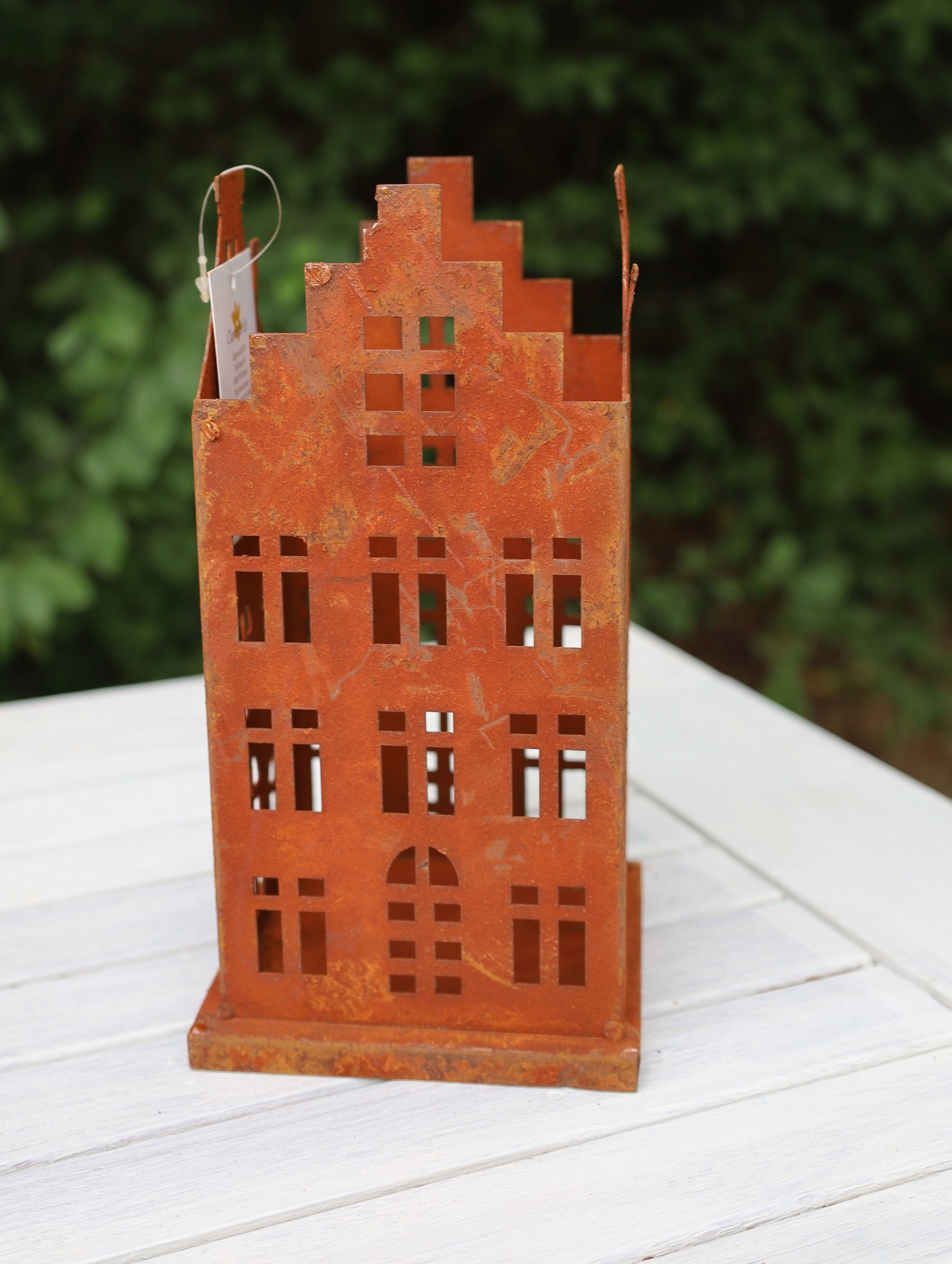 Verleihen Sie Ihrem Zuhause einen Hauch von ländlicher Idylle mit diesem charmanten Set aus zwei Edelrost-Häuschen im Landhausstil. Gefertigt aus Eisen mit Edelrost-Patina bilden die Häuschen einen perfekter Blickfang für Ihren Balkon oder Garten. Die kleinere Größe von 8x8x16 cm und die größere von 11x11x21 cm bieten vielseitige Gestaltungsmöglichkeiten als Dekorationselemente in Ihren Pflanzen, oder als stimmungsvolle Beleuchtungserweiterung.