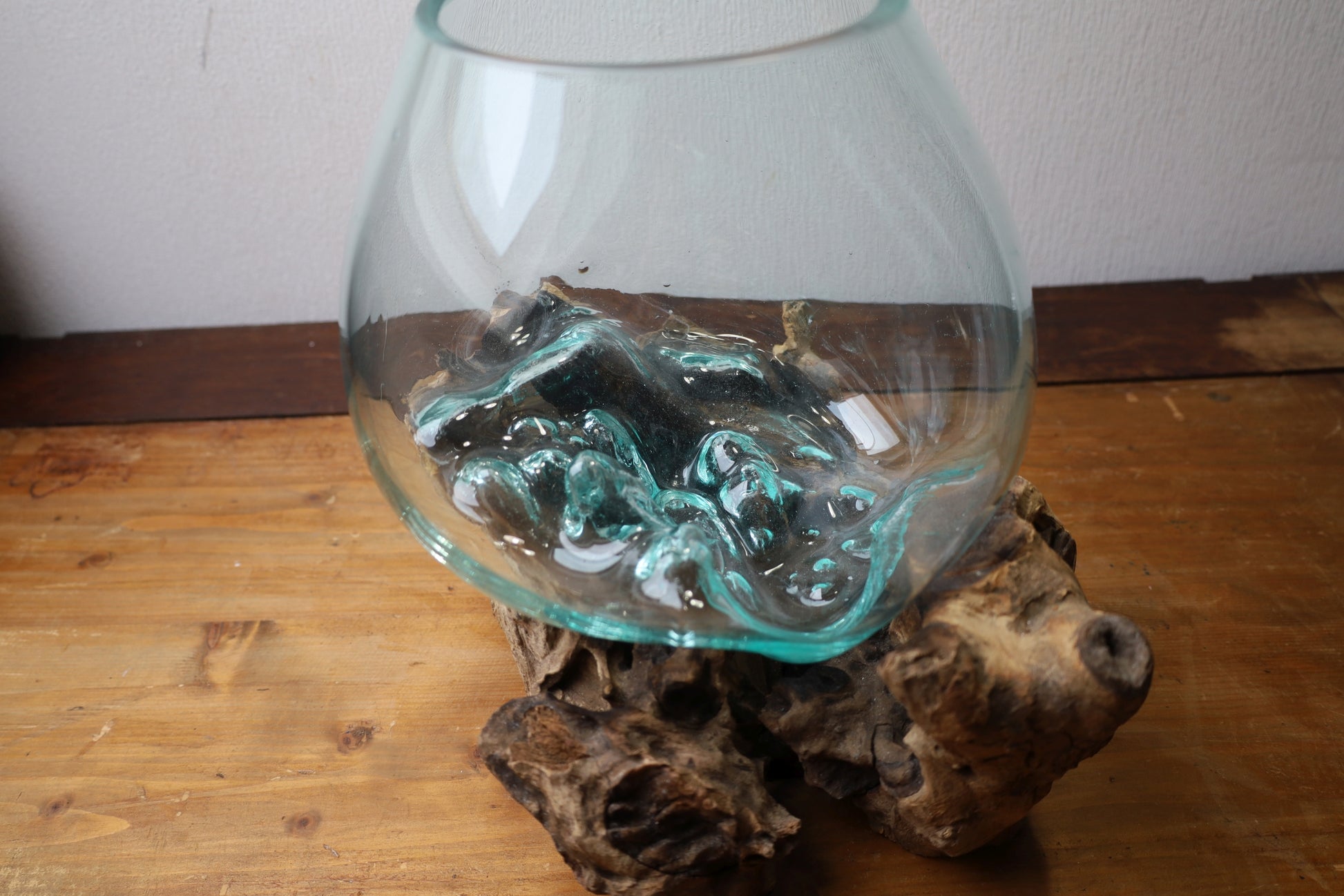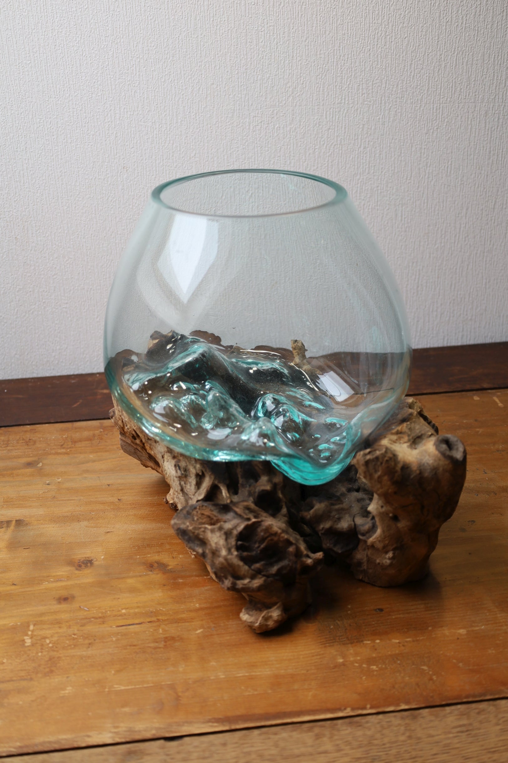 Glasvase auf Wurzelholz - Dekorative Schale Landhaus Deko