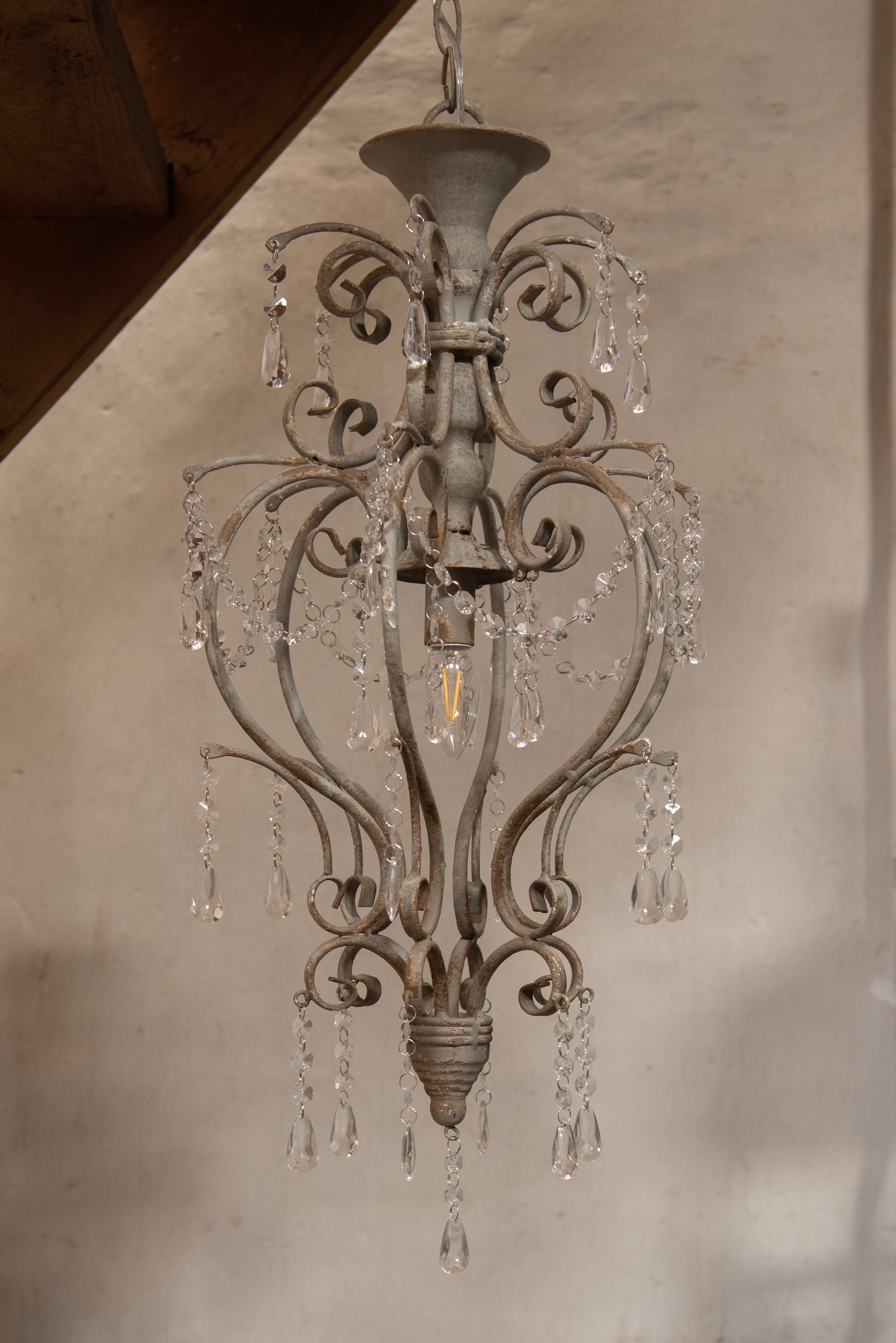 Diese elegante Hängelampe aus grauem Eisen mit einem Durchmesser von 32 cm und einer Höhe von 70 cm verleiht Ihrem Wohnbereich eine romantische Atmosphäre. Die zarten Kristalle fangen das Licht sanft ein und schaffen ein warmes, einladendes Ambiente, das zu gemütlichen Abenden und besonderen Momenten einlädt. Ein stilvolles Highlight für jeden Esstisch.