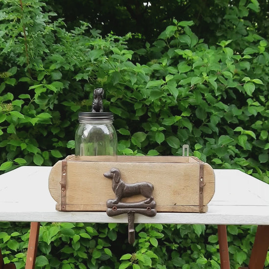 Hundegarderobe Wandhaken mit Leckerli-Glas - Vintage Ziegelform Holz