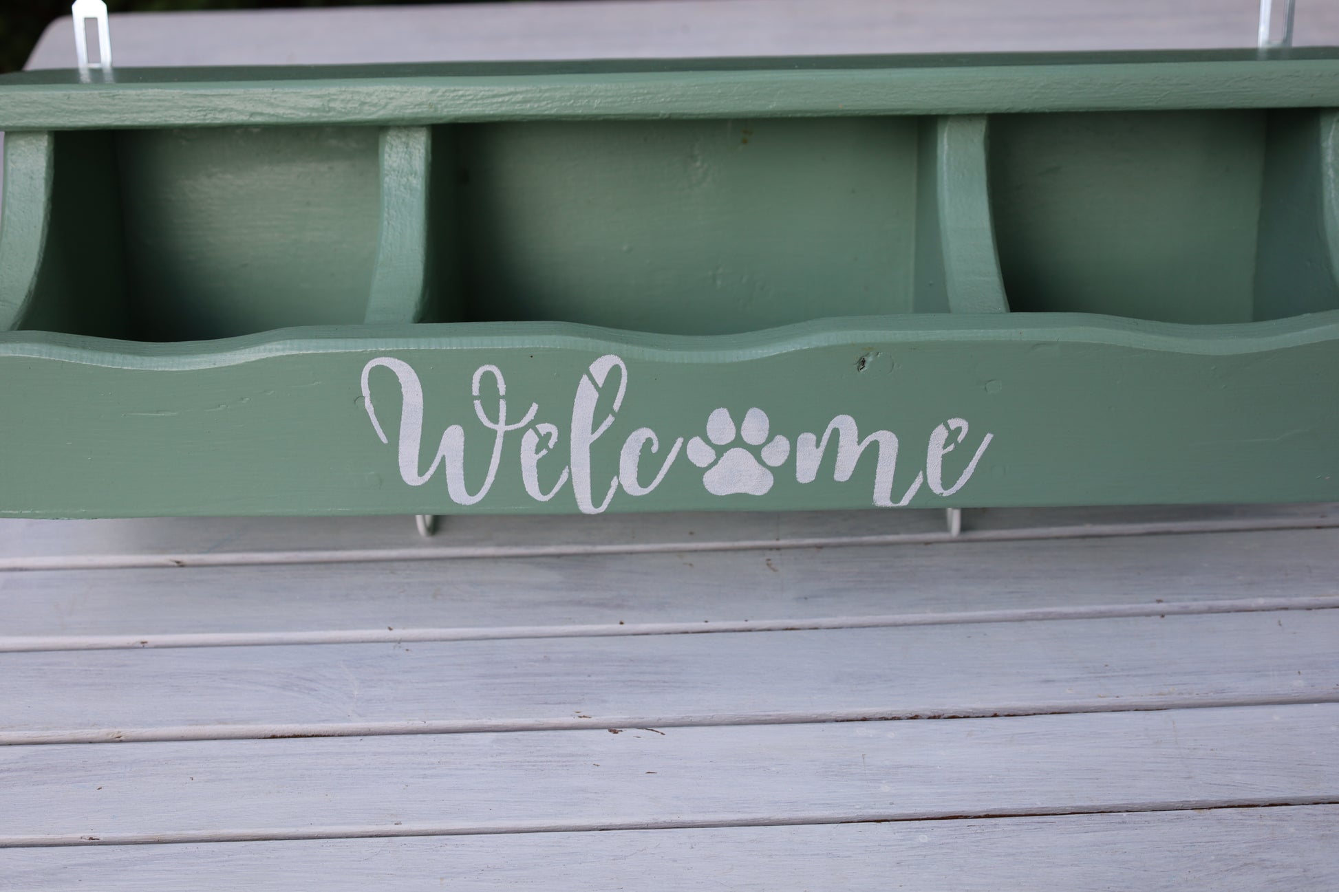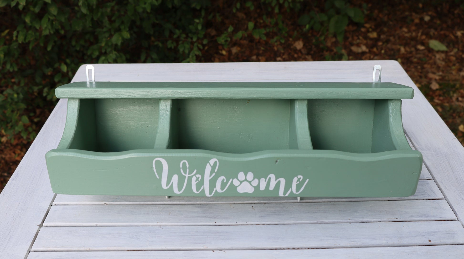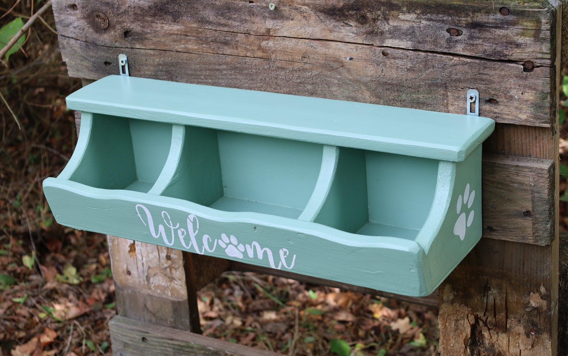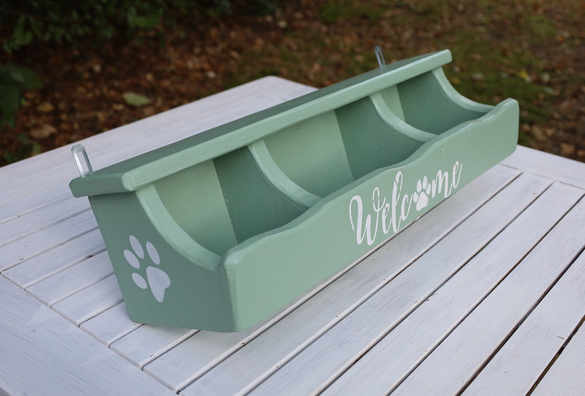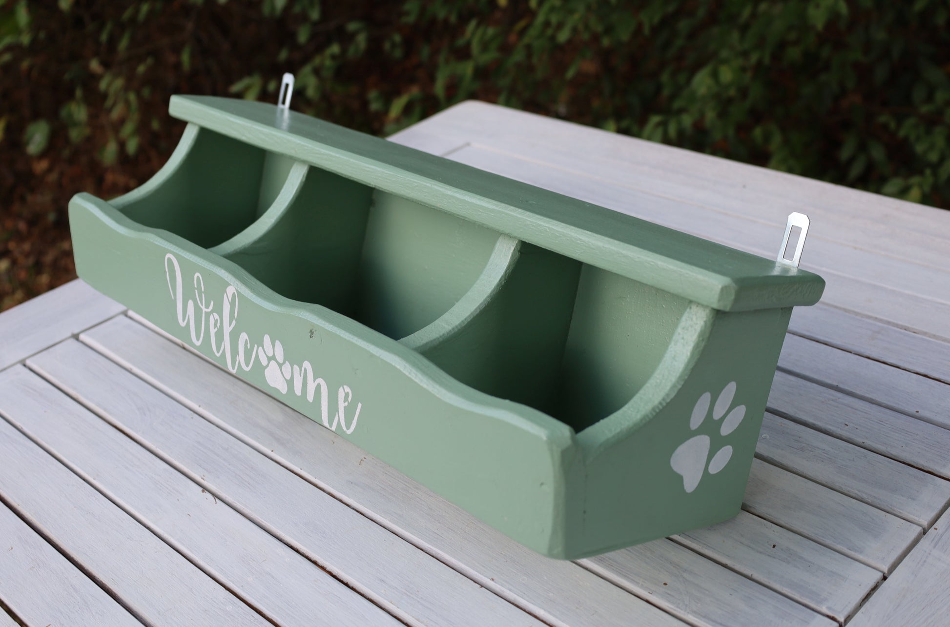 Diese Hundegarderobe in frischem Mintgrün verbindet Nachhaltigkeit mit Funktionalität. Aus hochwertigem Holz gefertigt, bietet sie praktische Haken für Leinen und Accessoires, ideal für alle Hundeliebhaber. Die clevere Flurablage hält den Eingangsbereich ordentlich und sorgt für schnellen Zugriff – eine nachhaltige Lösung durch Upcycling-Materialien, die Ihren Alltag erleichtert und gleichzeitig umweltbewusst gestaltet.