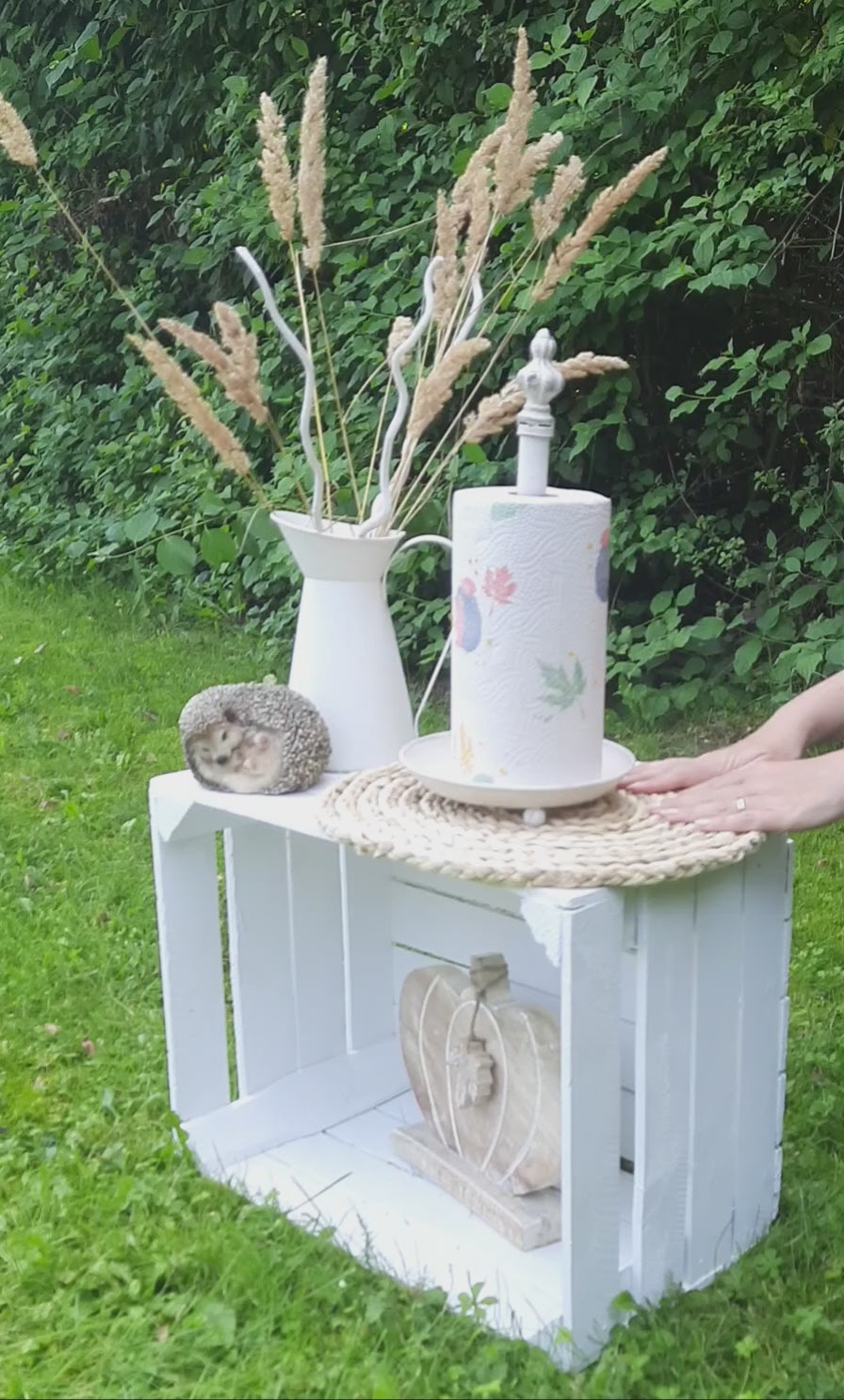 Eleganter Küchenrollenhalter aus robustem Eisen in zeitlosem Weiß – perfekt im Shabby Chic Stil. Der praktische Halter bewahrt Ihre Küchenrolle griffbereit auf und verleiht Ihrer Küche gleichzeitig einen charmanten, nostalgischen Touch. Die schlichte, hochwertige Verarbeitung passt wunderbar zu rustikalen und modernen Einrichtungen. Ein stilvolles Accessoire, das Funktionalität mit ästhetischem Charme verbindet.