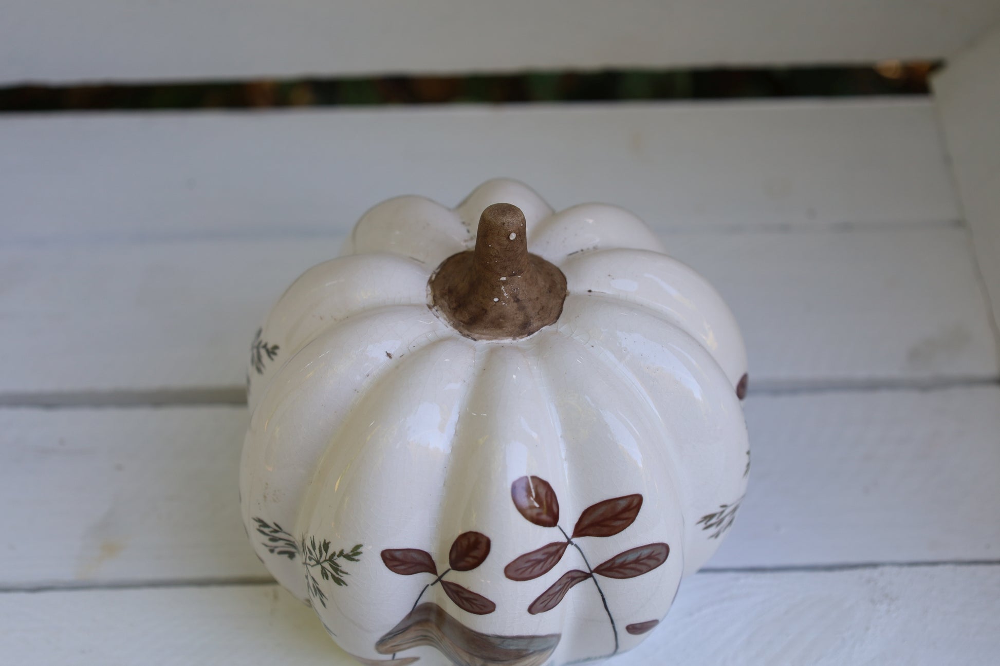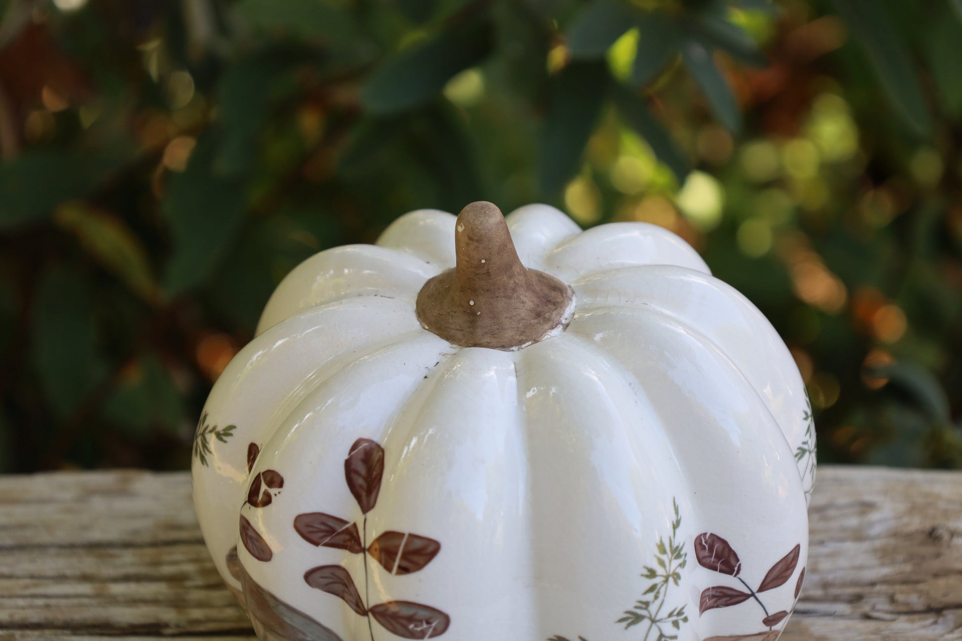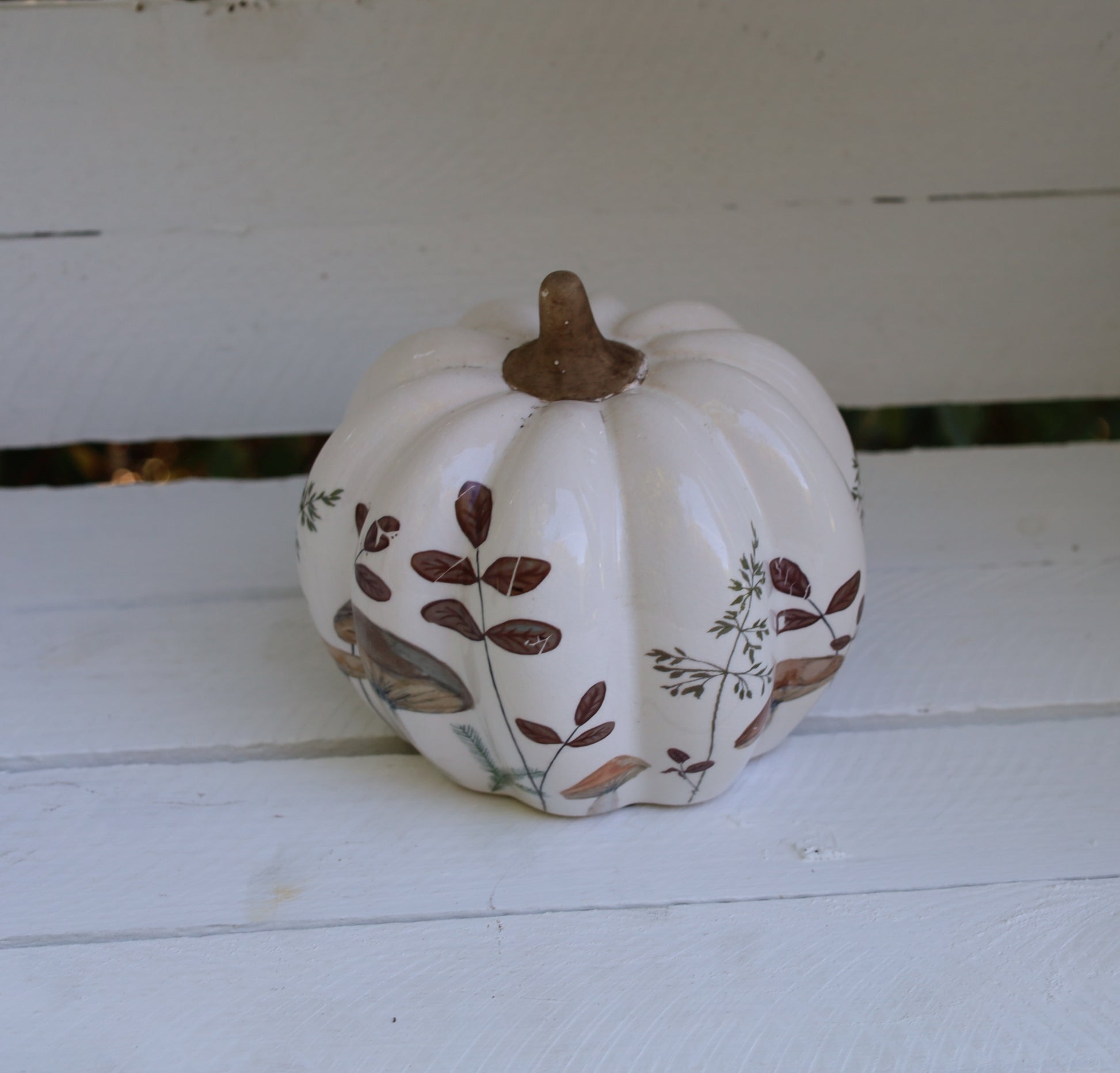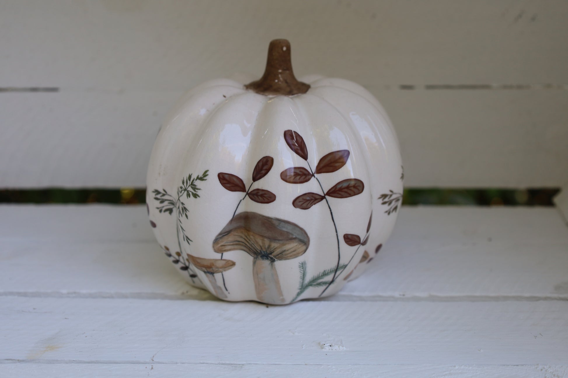 Keramik-Kürbis mit Pilz-Motiv Beige-Braun - Herbstdeko Landhausstil