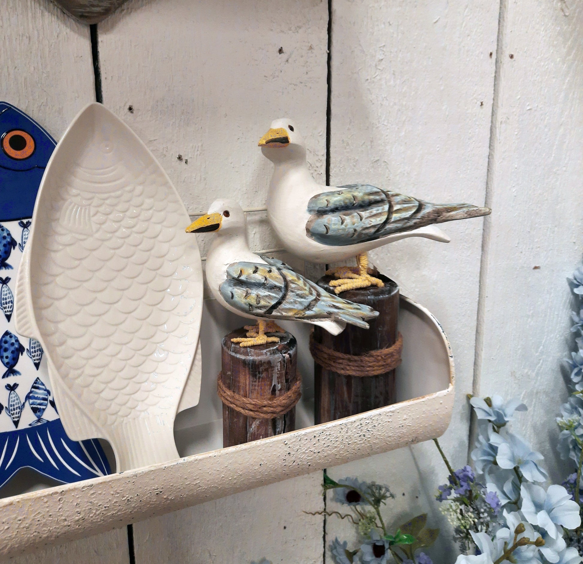Möwen aus Holz 2er Set - Maritime Deko Figuren Blau-Weiß auf Polder