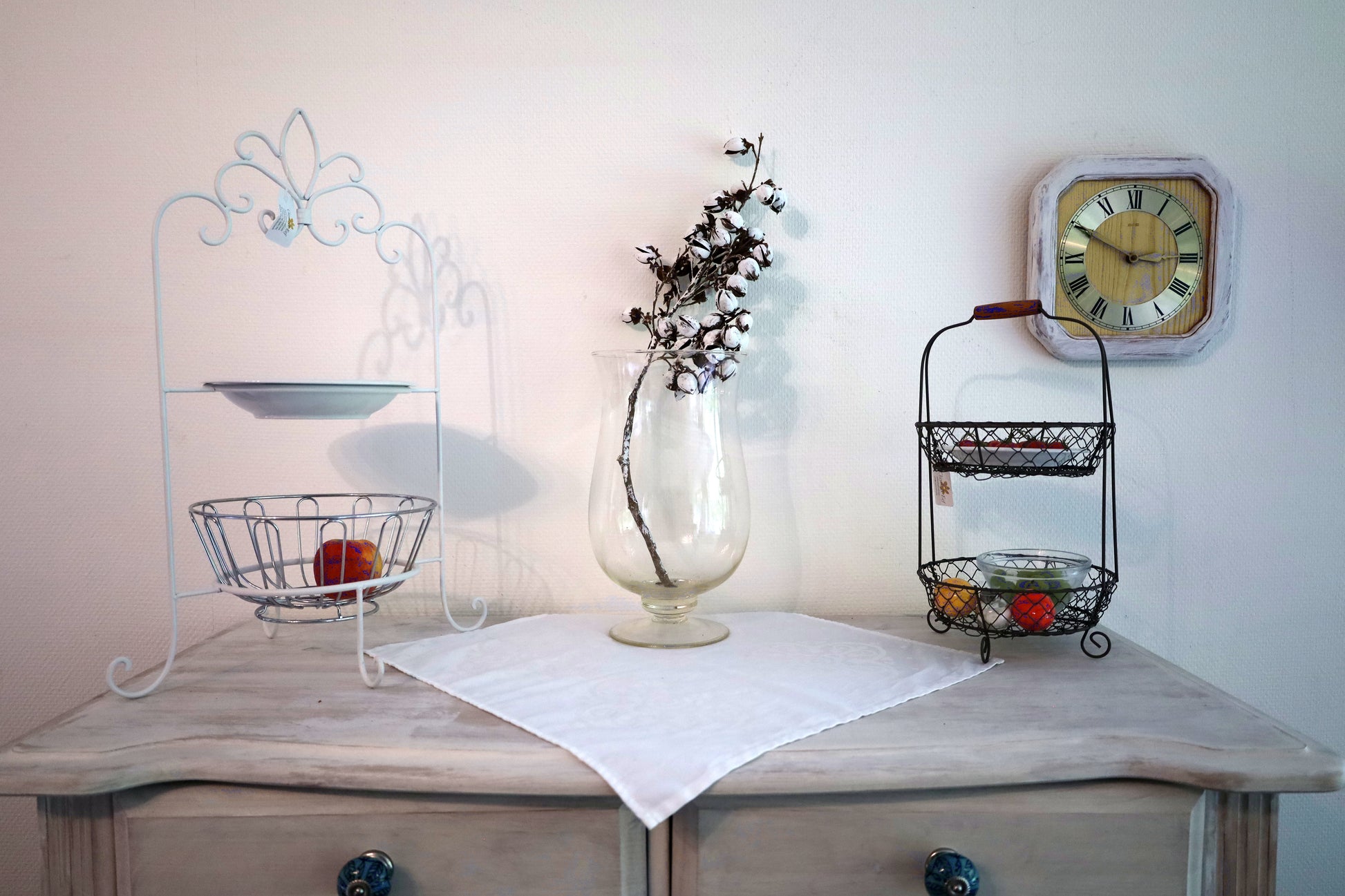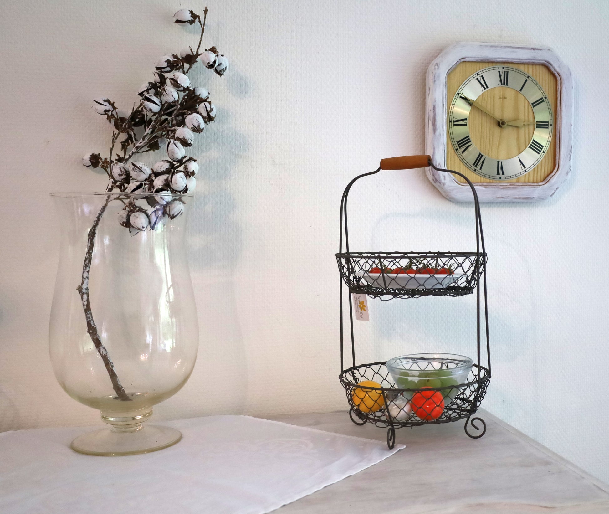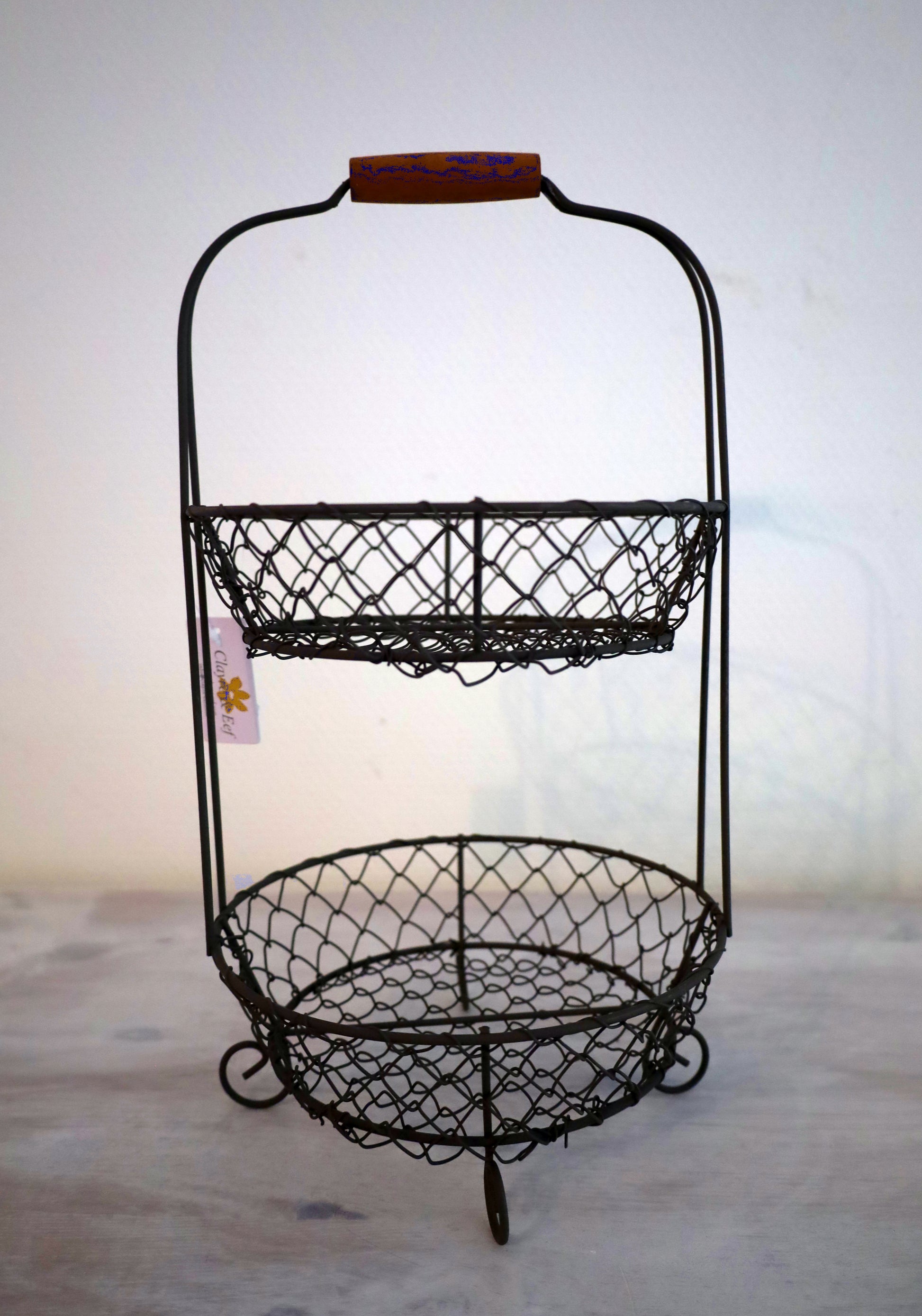 Kompakte Etagere mit zwei geräumigen Draht-Körben – die perfekte Lösung für die Obst- und Gemüselagerung. Das offene Design ermöglicht schnellen Zugriff und gute Belüftung. Das stabile Metallgestell passt unauffällig in jede Küche und lässt sich leicht reinigen. Platzsparend und funktional für Arbeitsplatte oder Speisekammer.
