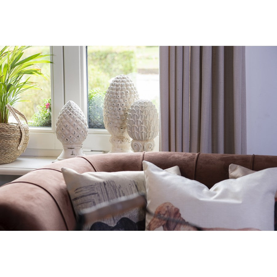 Der Pinienzapfen aus Terracotta ist eine zeitlose Garten-Dekoration im klassischen Landhausstil. Sein natürliches Design bringt rustikalen Charme in Ihren Außenbereich, während das widerstandsfähige Material für Langlebigkeit sorgt. Perfekt, um Ihrem Garten eine warme und einladende Atmosphäre zu verleihen.
