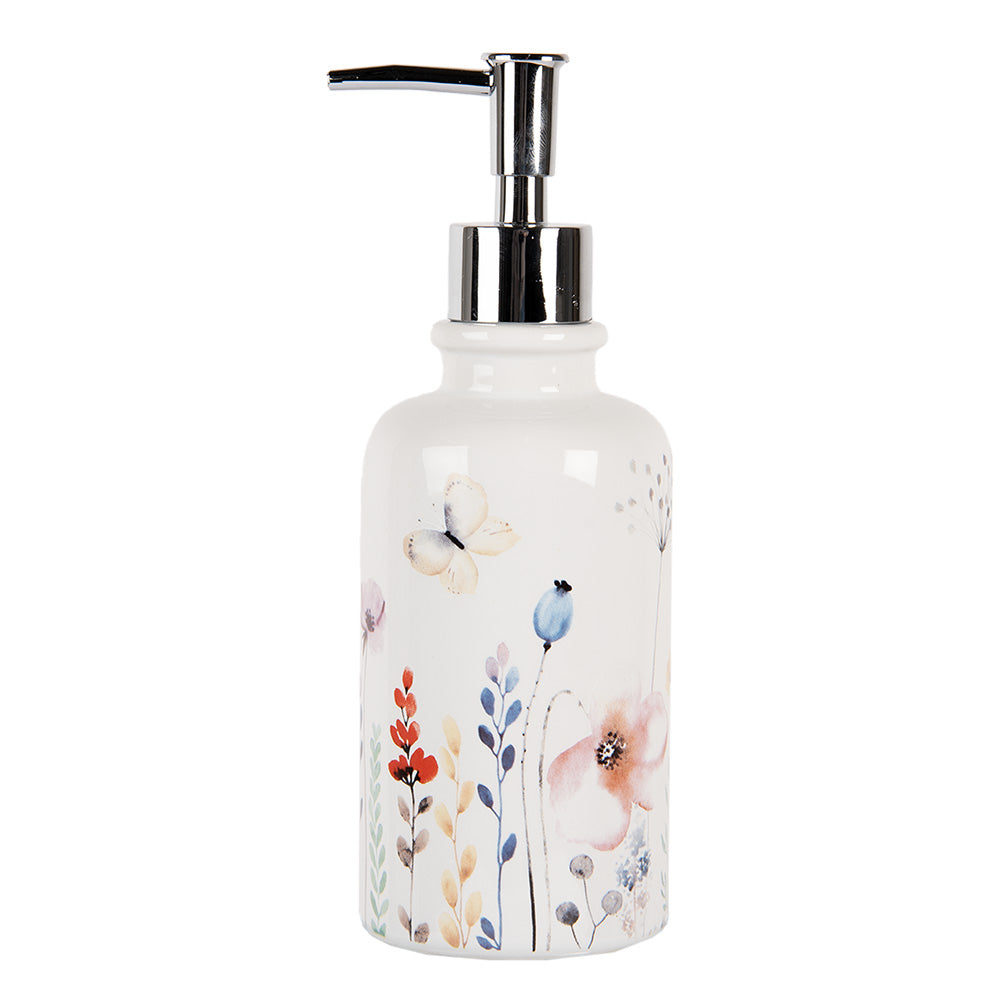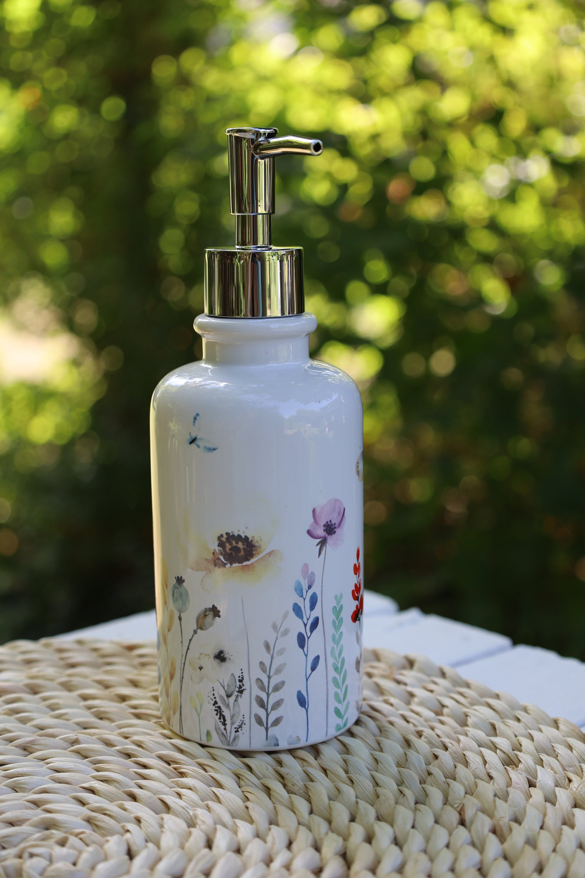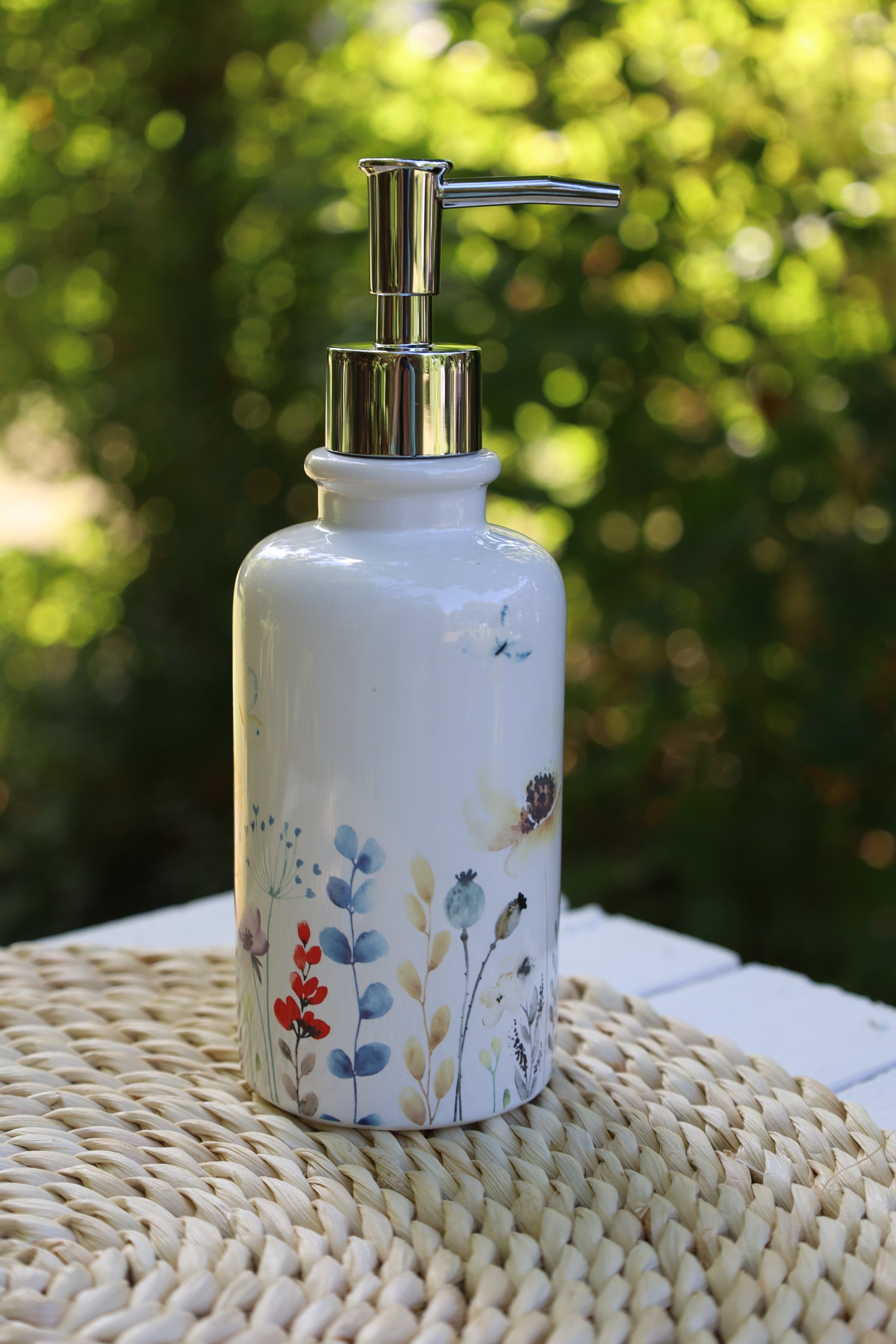 Bringen Sie mit diesem weißen Keramik-Seifenspender im Blumen-Design frischen Sommerflair in Ihr Badezimmer, Ihre Toilette oder Küche. Mit einem Fassungsvermögen von 350 ml sorgt die praktische Seifenpumpe für eine einfache und hygienische Handhabung. Das elegante Blumenmuster verleiht jedem Raum eine leichte, natürliche Atmosphäre und macht den Spender zum stilvollen Blickfang. Ideal, um Ihren Alltag mit einem Hauch von Sommerfrische zu bereichern.