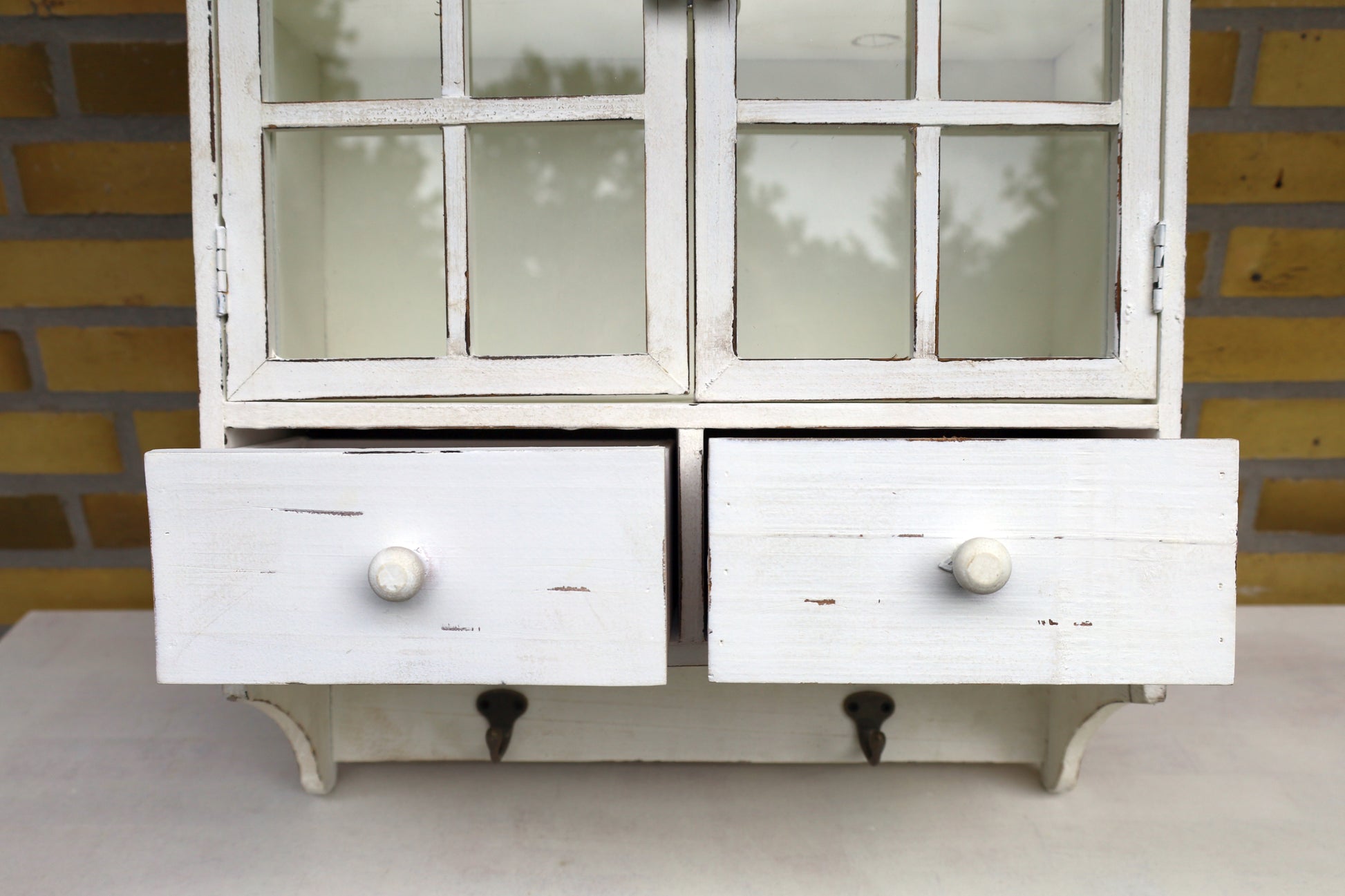 Shabby Chic Hängeschrank Weiß aus Holz - Wandschrank mit Schubladen und Haken im Landhausstil