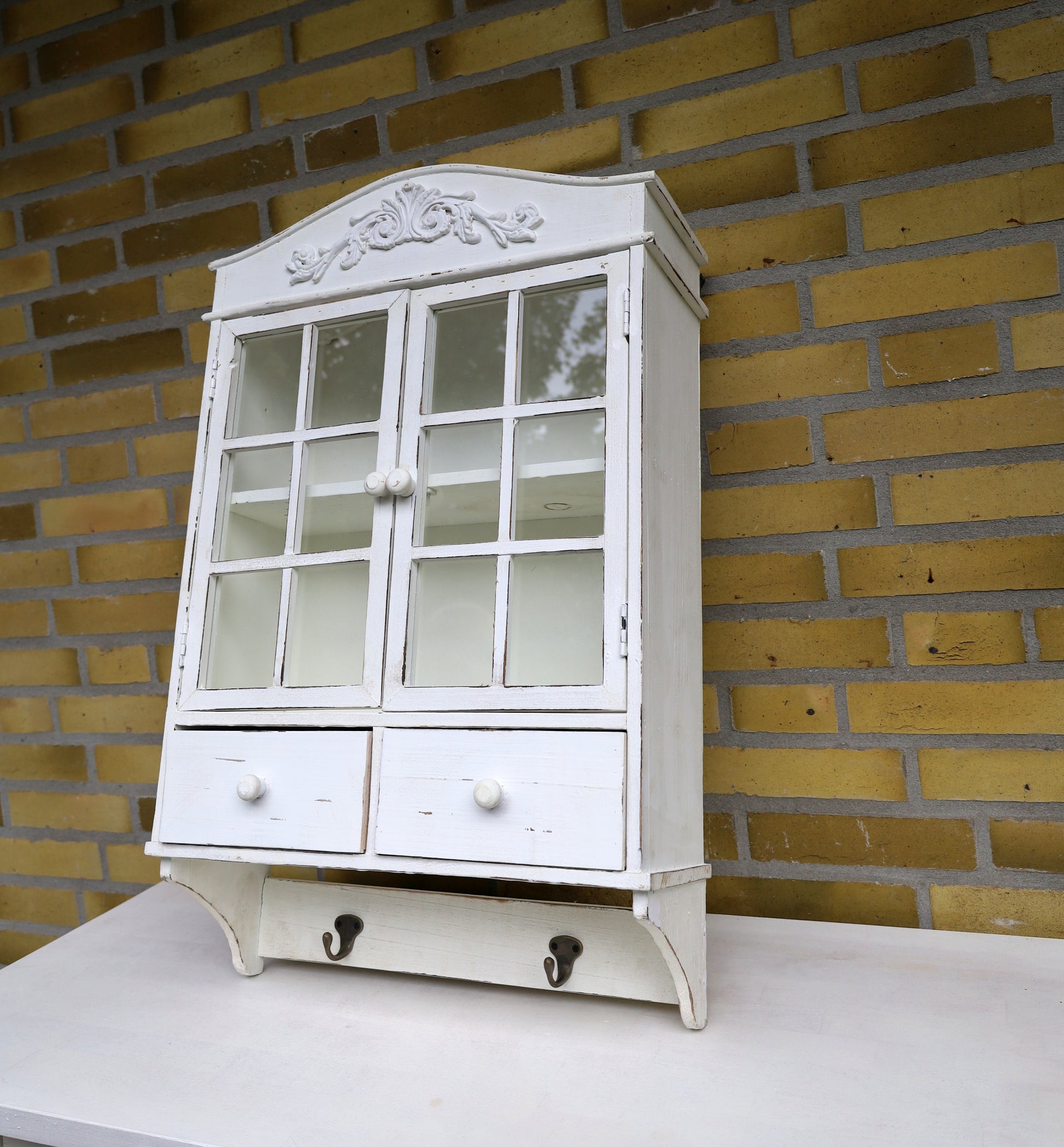 Dieser charmante Shabby Chic Hängeschrank aus weißem Holz bringt verspielten Vintage-Flair in jeden Raum. Mit praktischen Schubladen und Haken bietet er nicht nur Stauraum, sondern auch eine hübsche Möglichkeit, Lieblingsstücke stilvoll zu präsentieren. Perfekt, um Ordnung mit einem Hauch von Nostalgie zu verbinden!