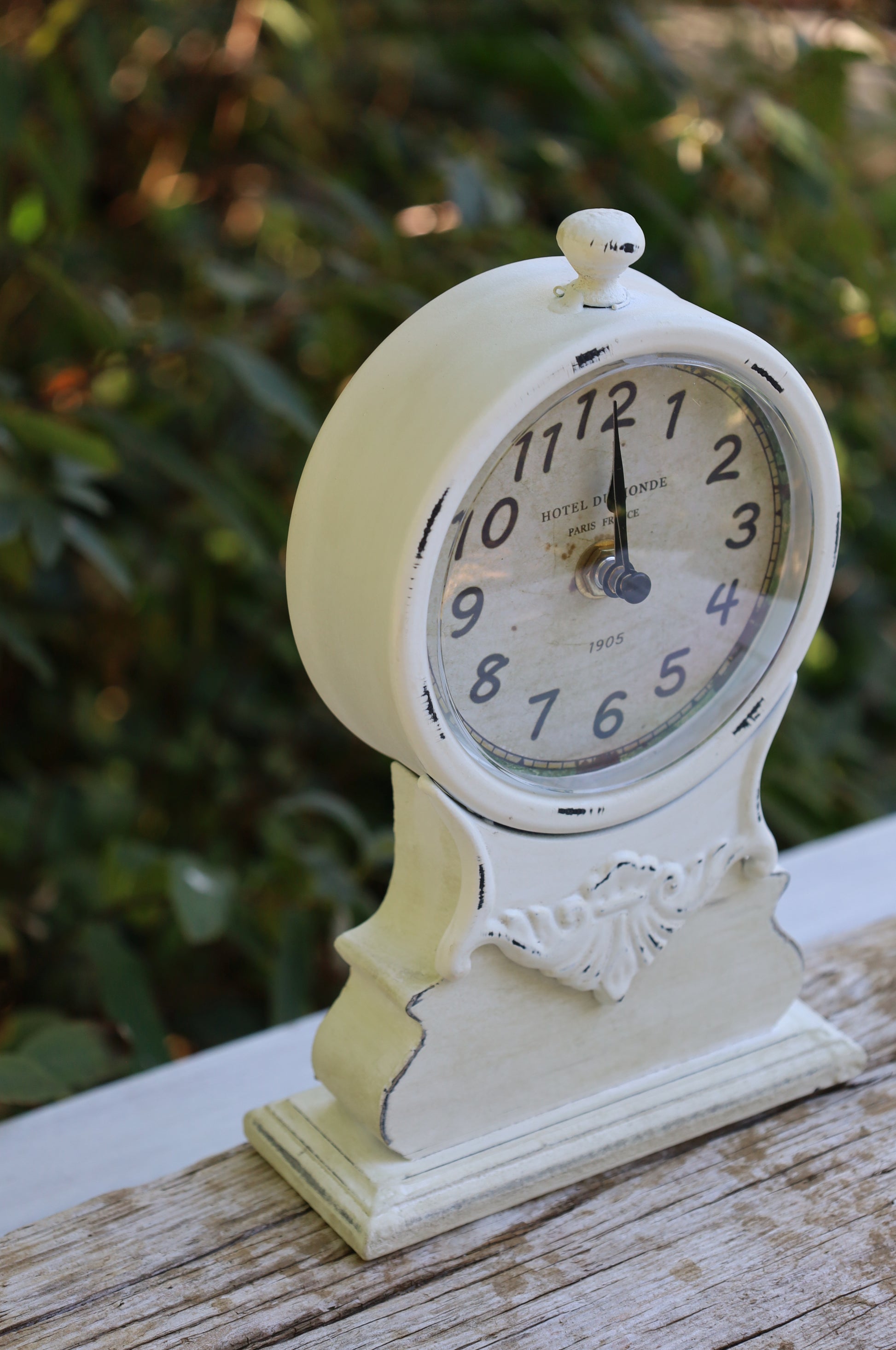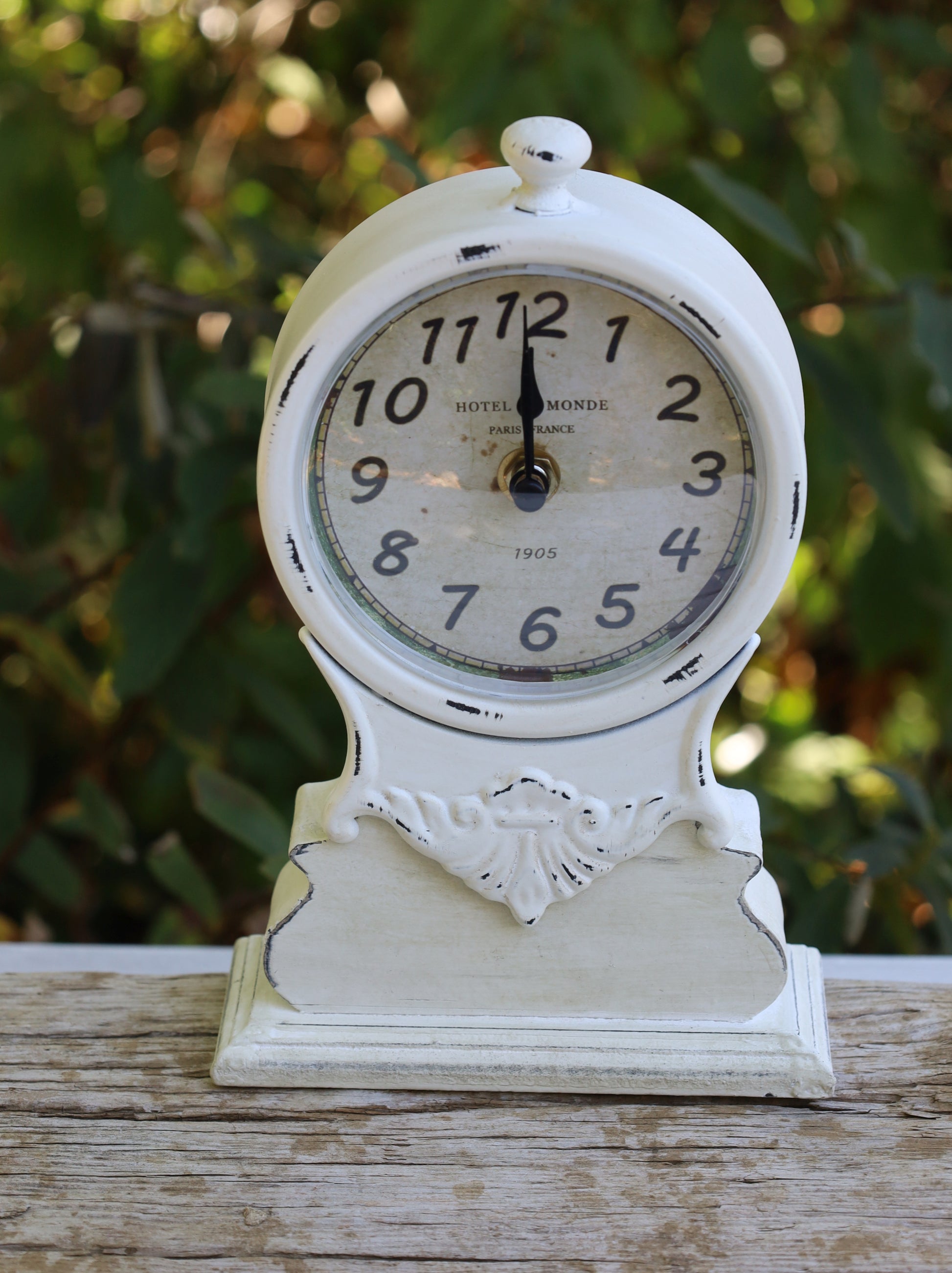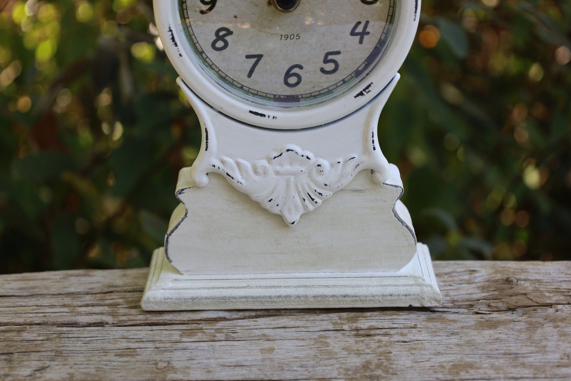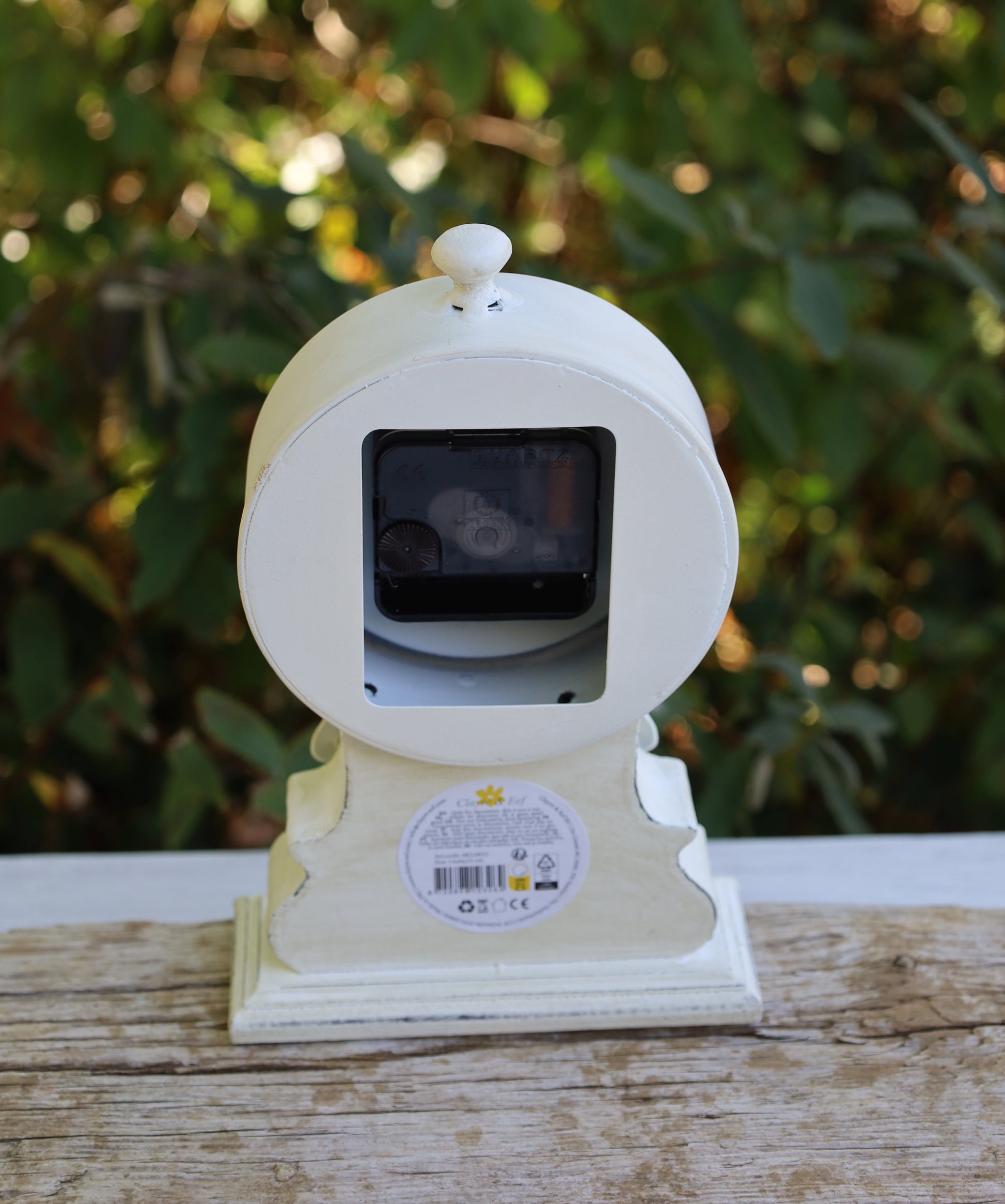 Standuhr Shabby Chic Weiß - Vintage Tischuhr aus Holz im Landhausstil