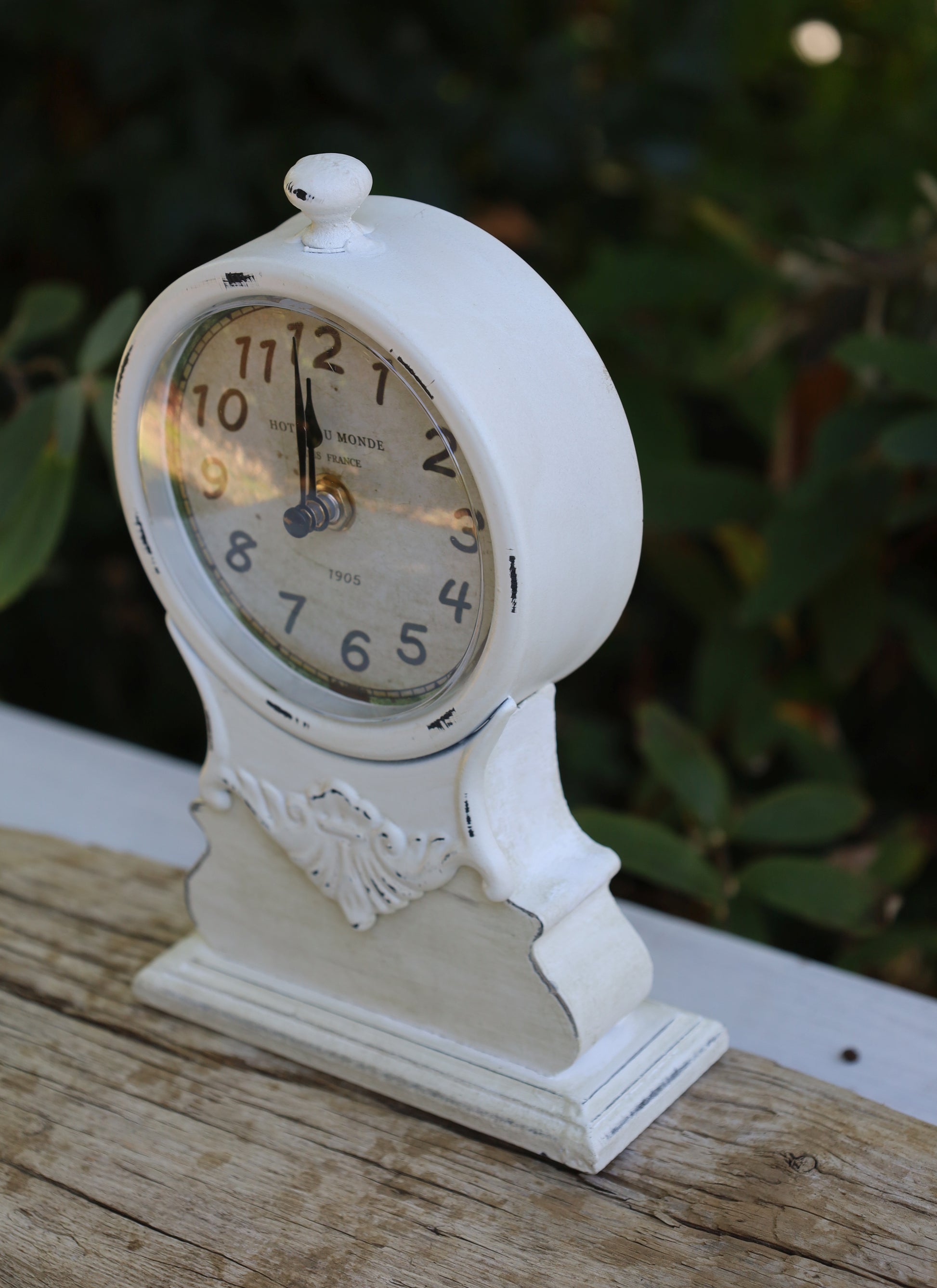 Diese elegante Stand- und Tischuhr im Shabby Chic Stil verbindet rustikalen Charme mit einem dezenten Weiß Farbton. Aus hochwertigem Holz gefertigt, setzt sie in jedem Raum ein stilvolles Vintage-Highlight und sorgt für eine angenehme Atmosphäre. Ein zeitloses Dekorationsstück, das Funktionalität und nostalgischen Flair perfekt vereint. Ideal für Liebhaber von wohnlichen, nostalgischen Akzenten.