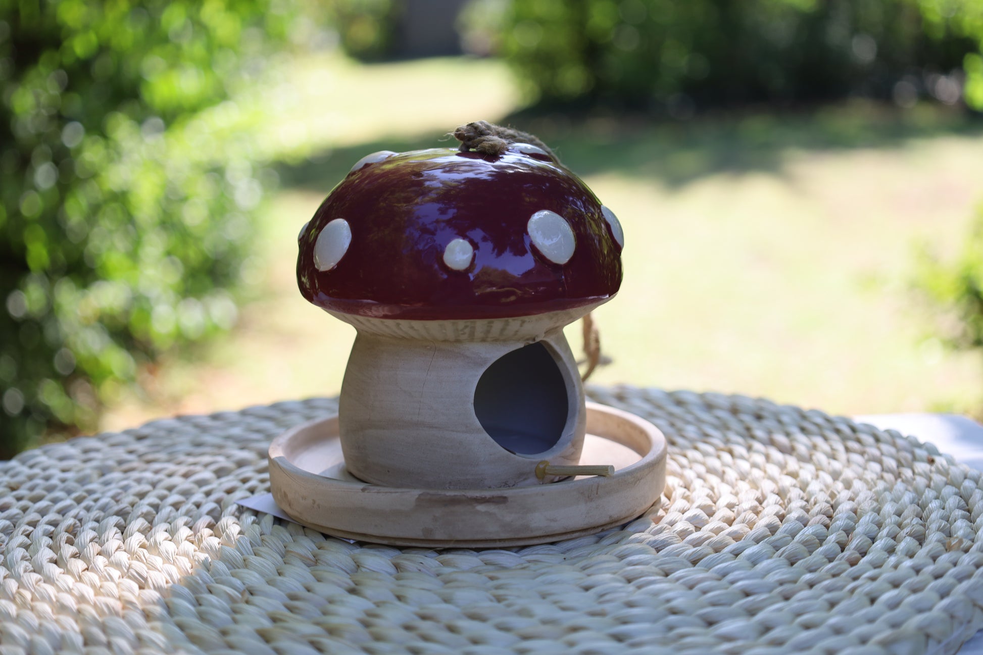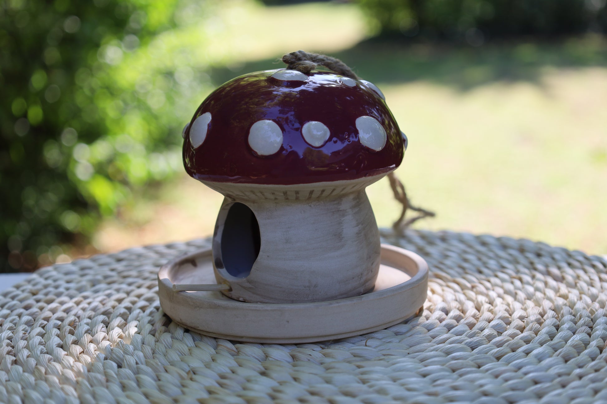 Vogelhäuschen / Schlafplatz für Vögel aus Keramik in Fliegenpilzform