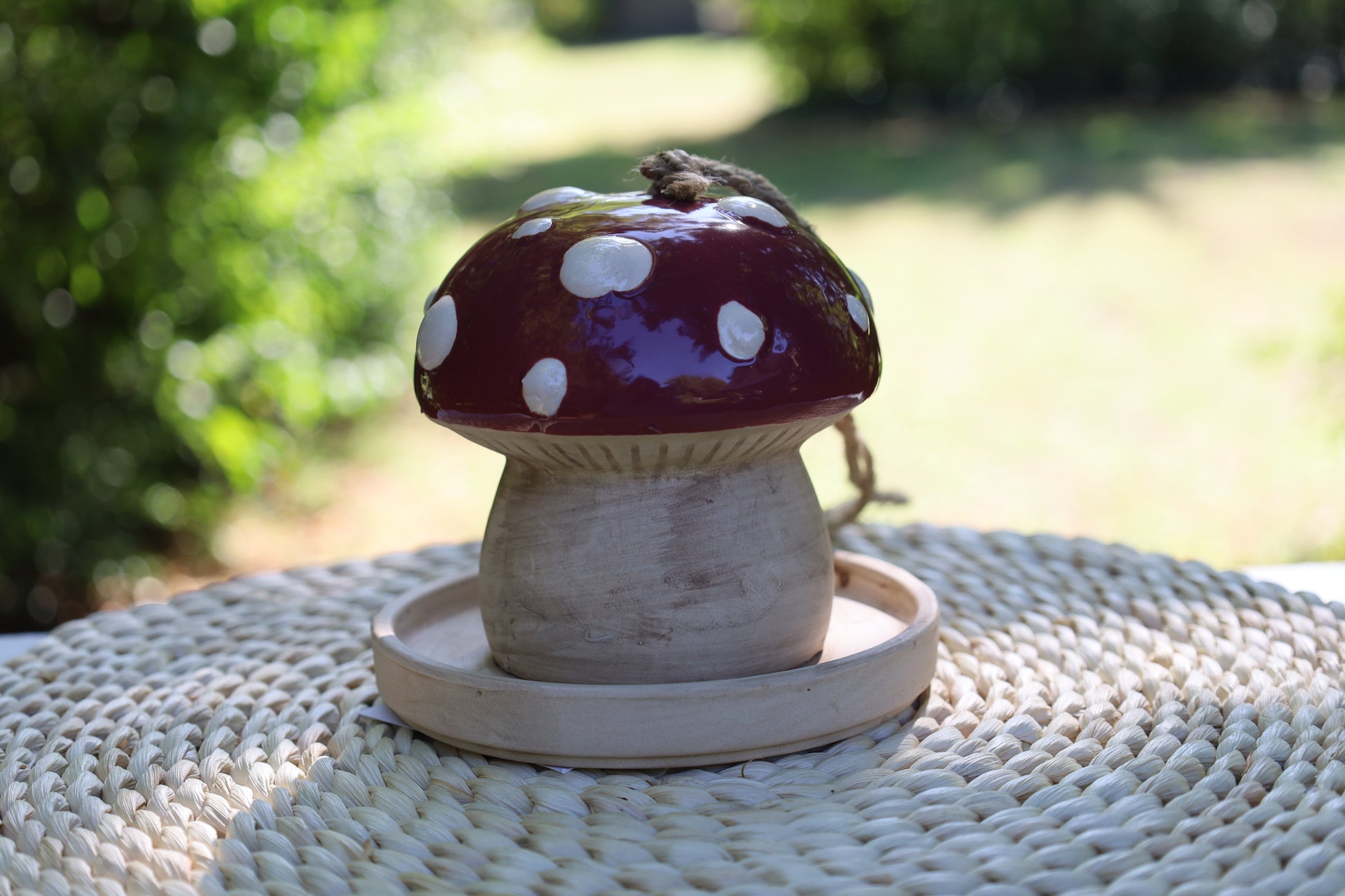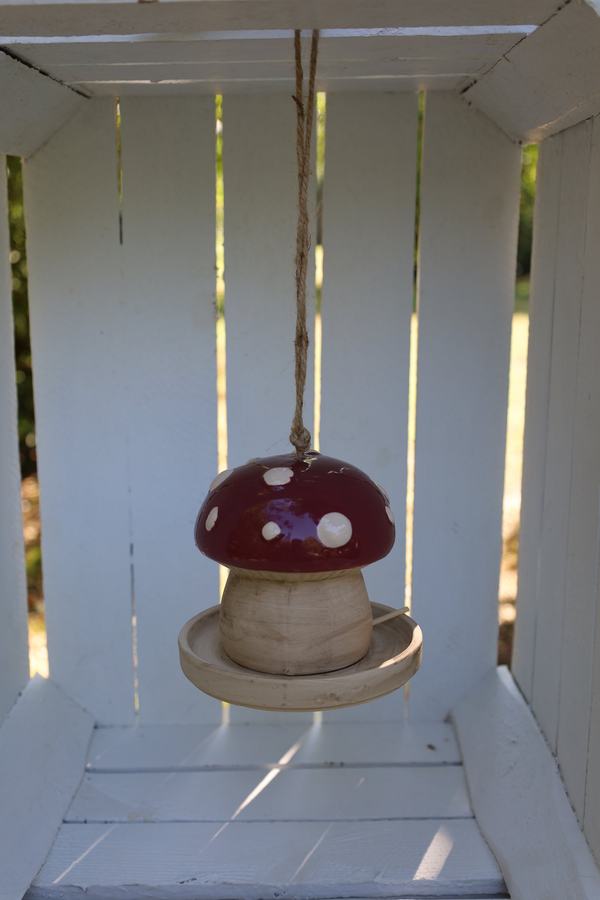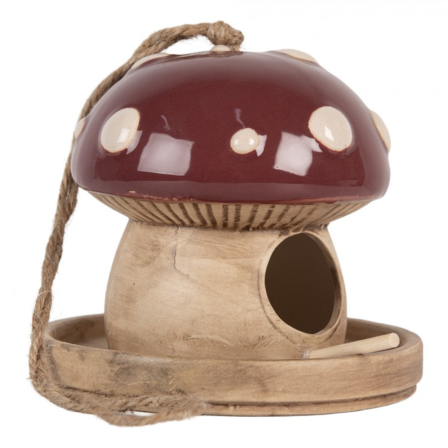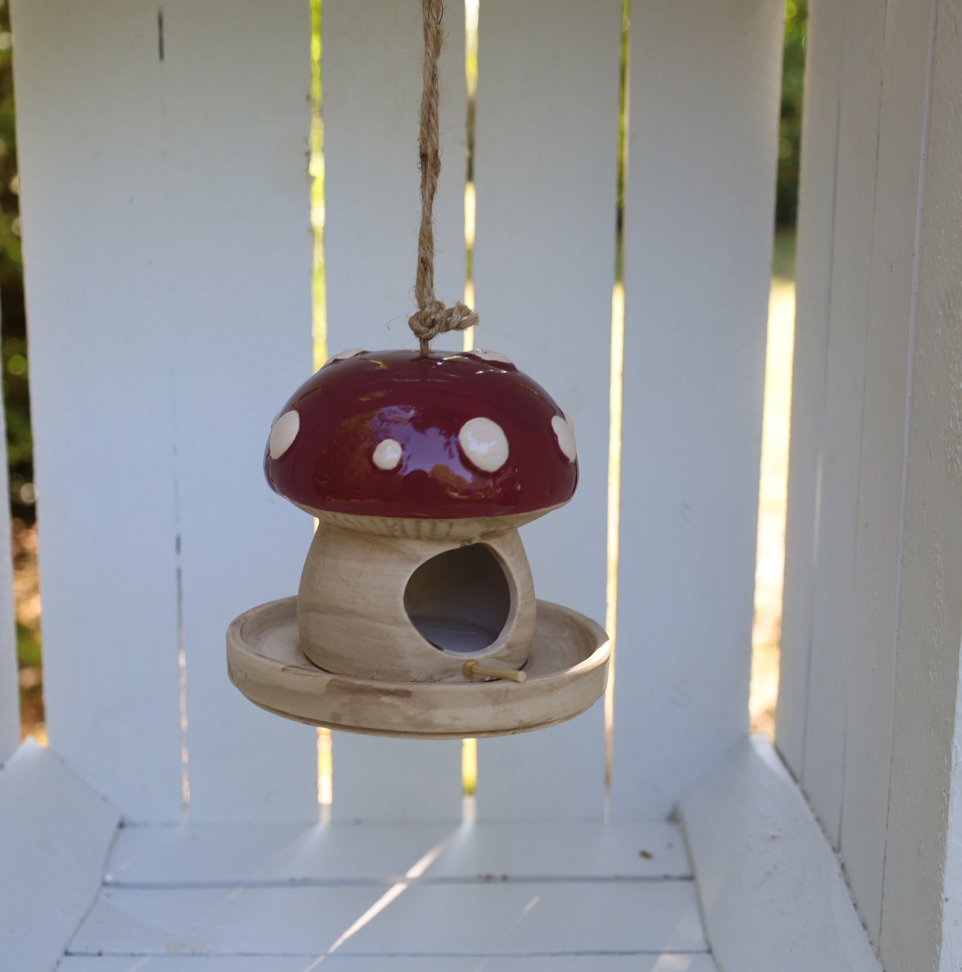 Dieses dekorative Vogelhäuschen aus Keramik in Form eines Fliegenpilzes bietet Vögeln einen gemütlichen Schlafplatz. Es verbindet praktischen Schutz mit einem charmanten Design, das jeden Garten oder Balkon verschönert. Ein liebevolles Zuhause für gefiederte Freunde und ein echter Blickfang zugleich.