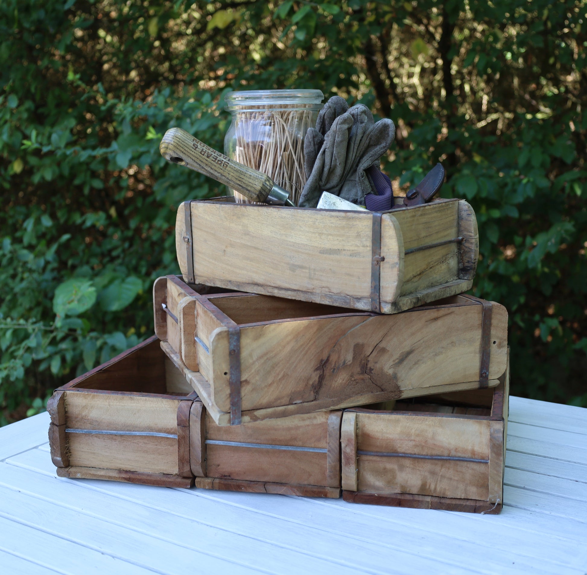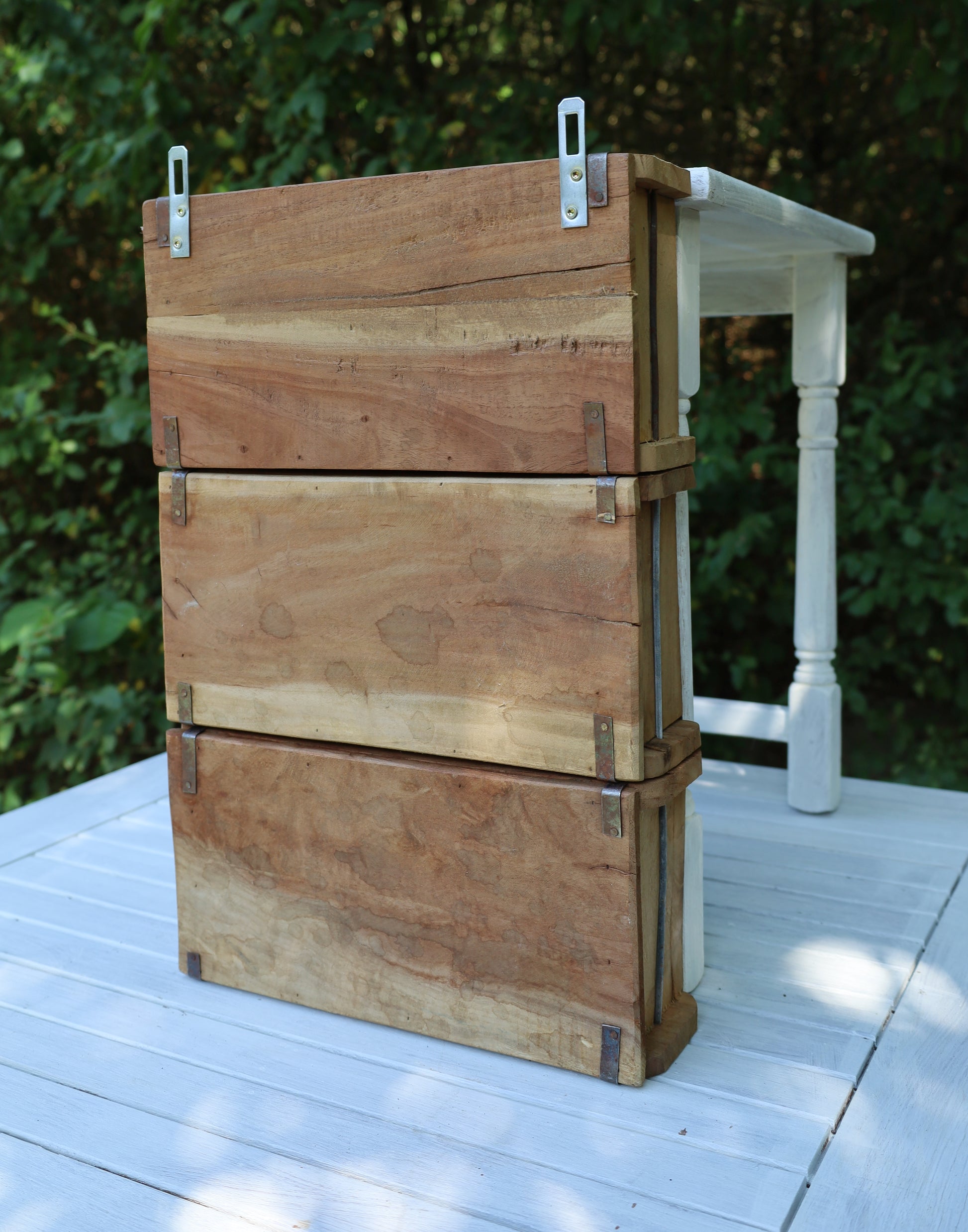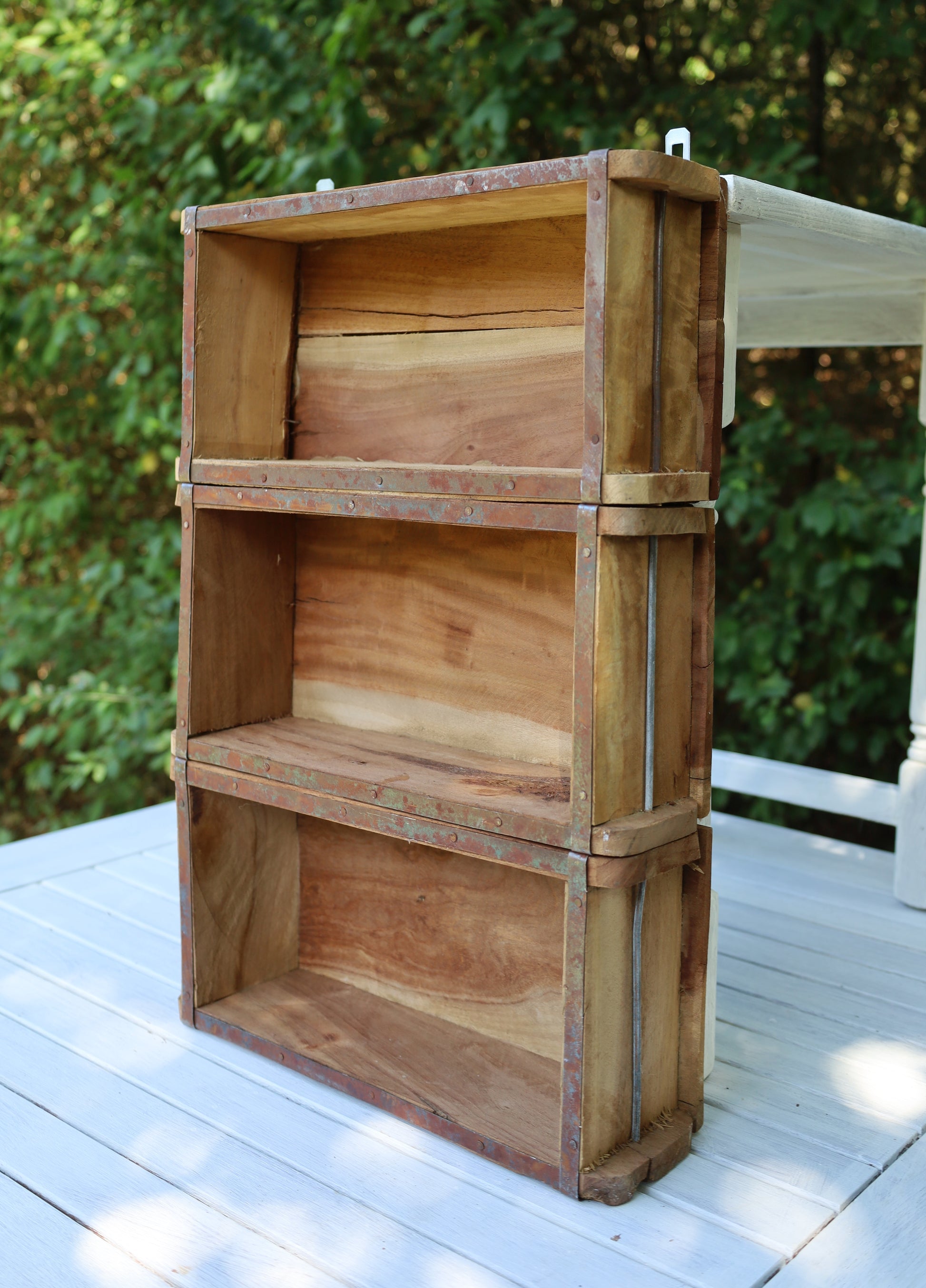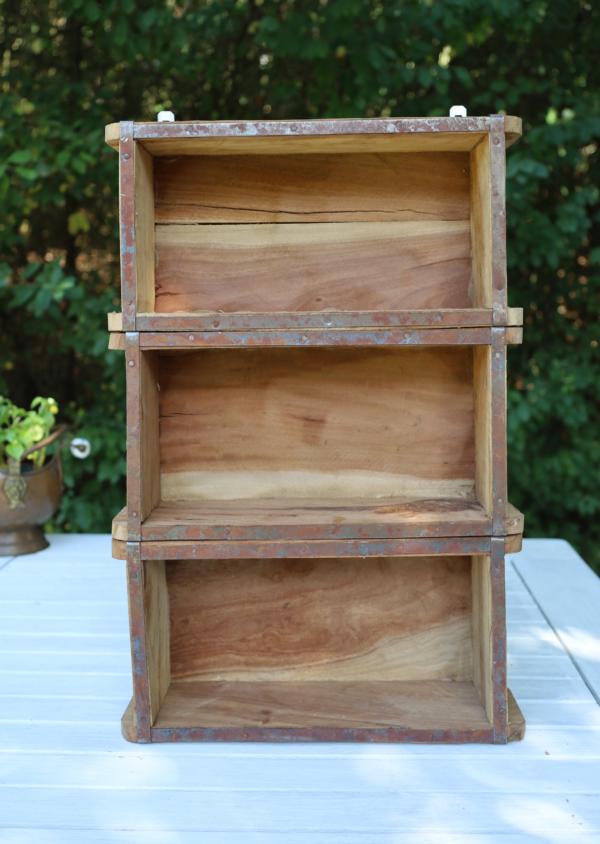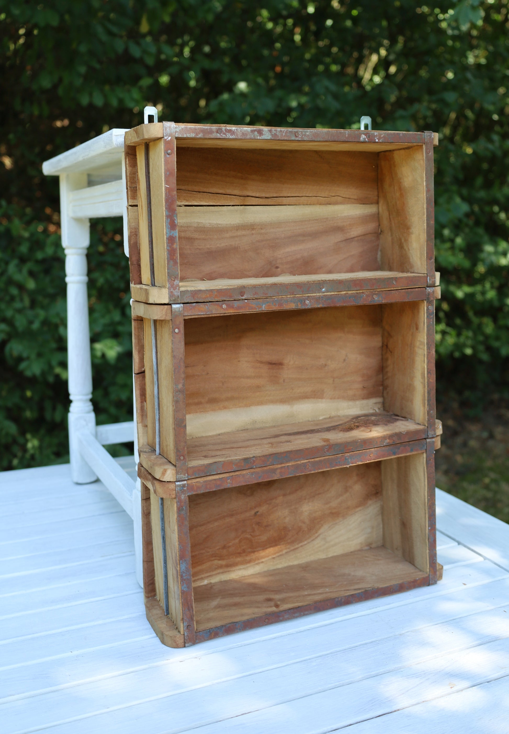 Rustikales Wandregal aus Holz-Ziegelformen - Vintage Braun